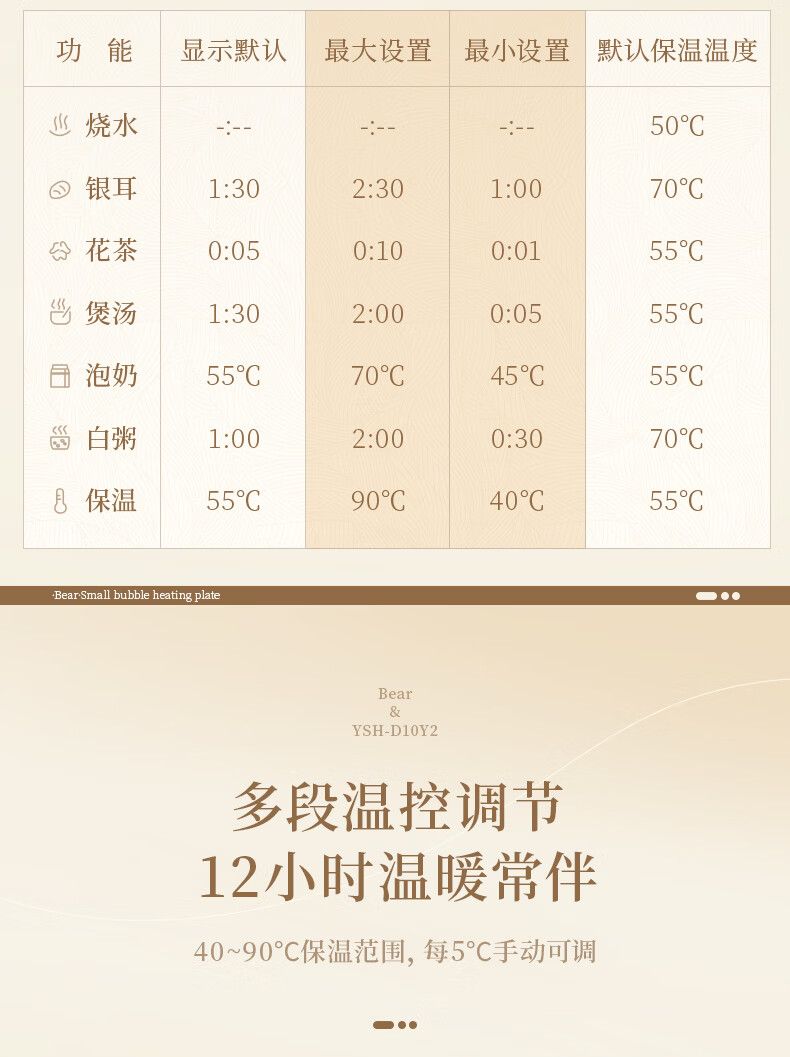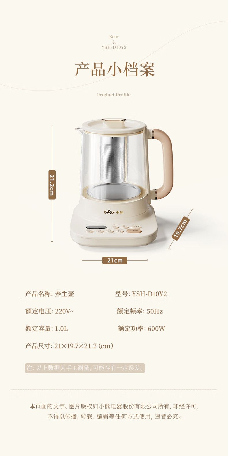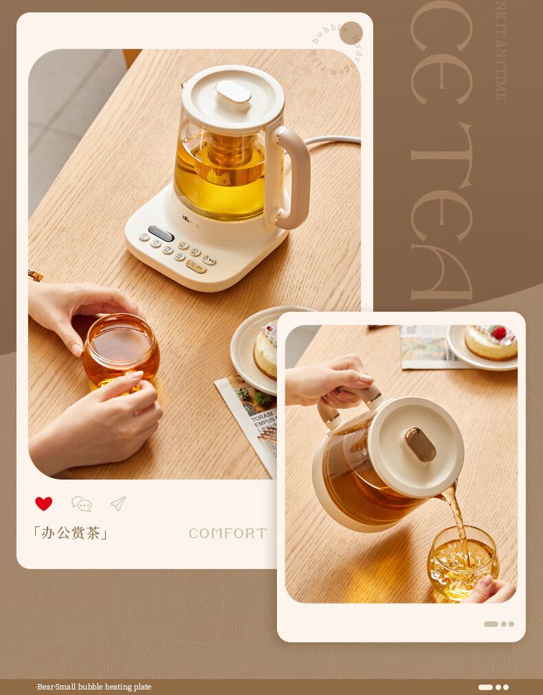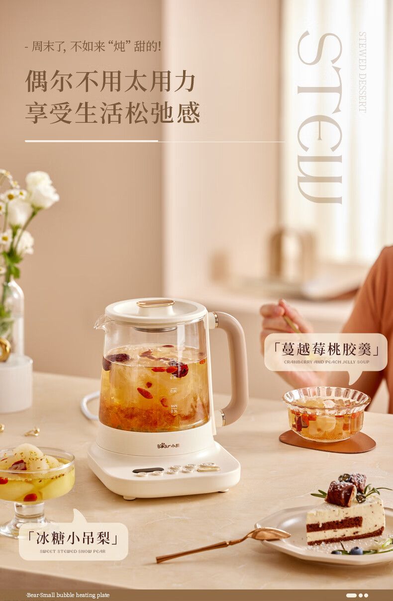 商品名称:小熊小气泡养生壶YSH-D10Y2 烧水壶 降噪涂层 1升迷你恒温花茶壶 带滤网