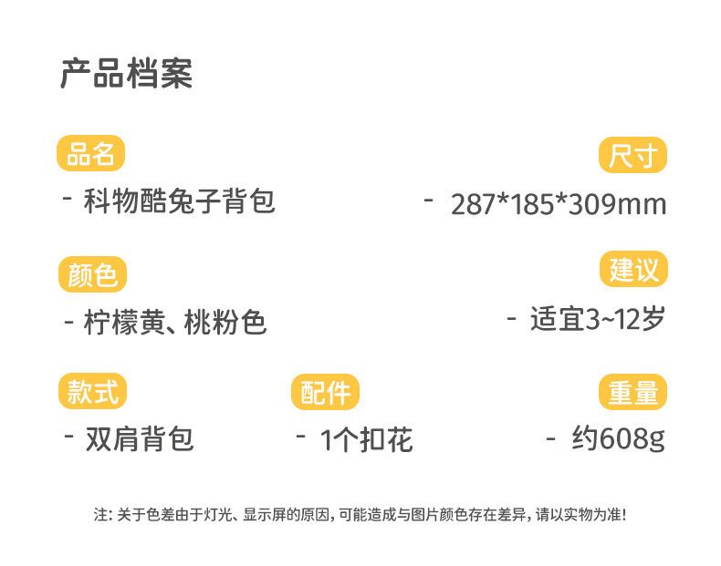 商品名称:科物酷 童潮动物背包K52粉色