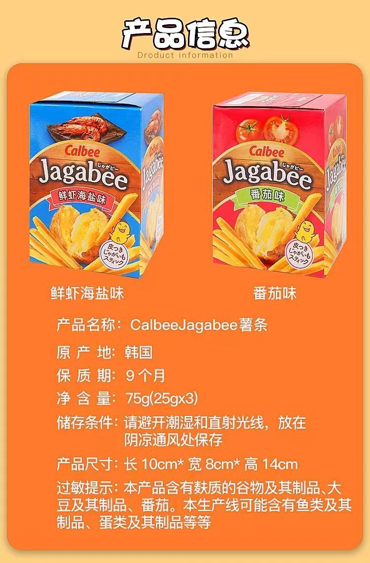 商品名称:韩国进口Calbee卡乐比薯条鲜虾海盐番茄味下午茶休闲小吃零食盒装