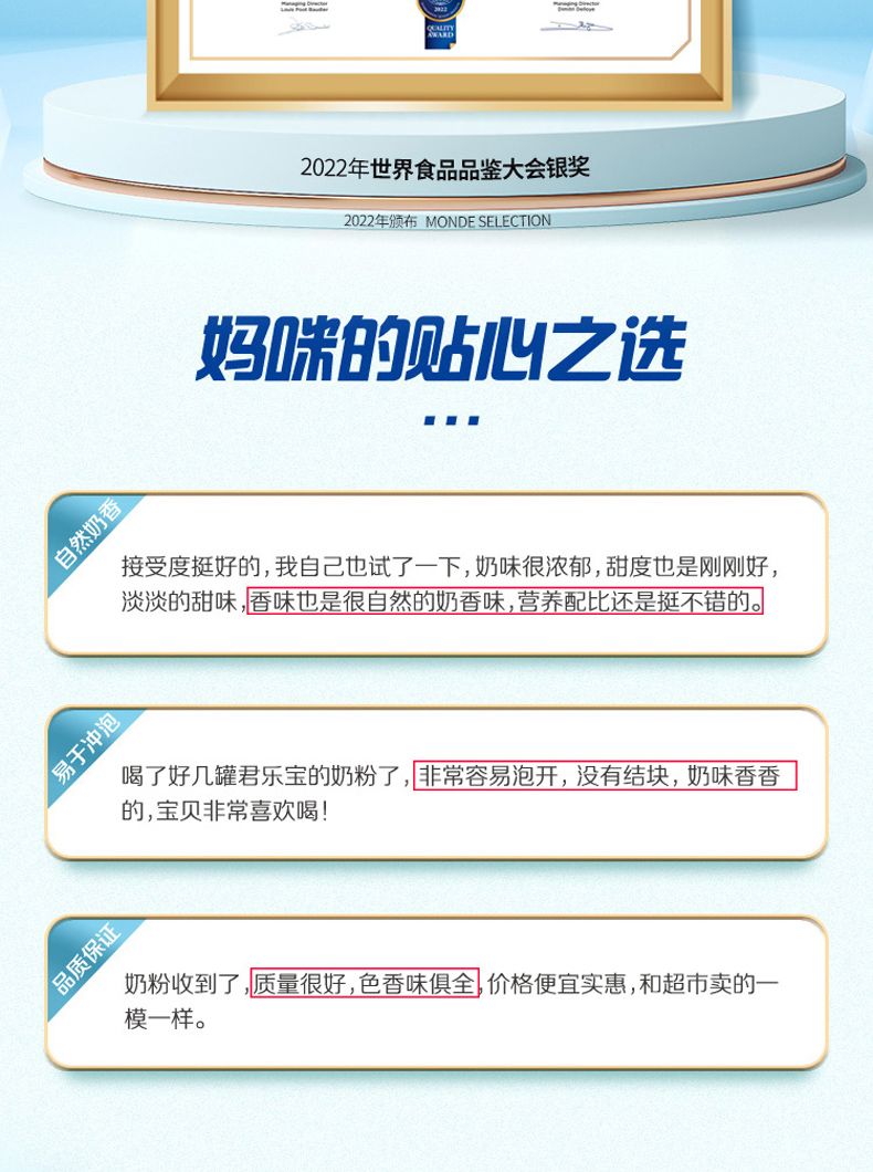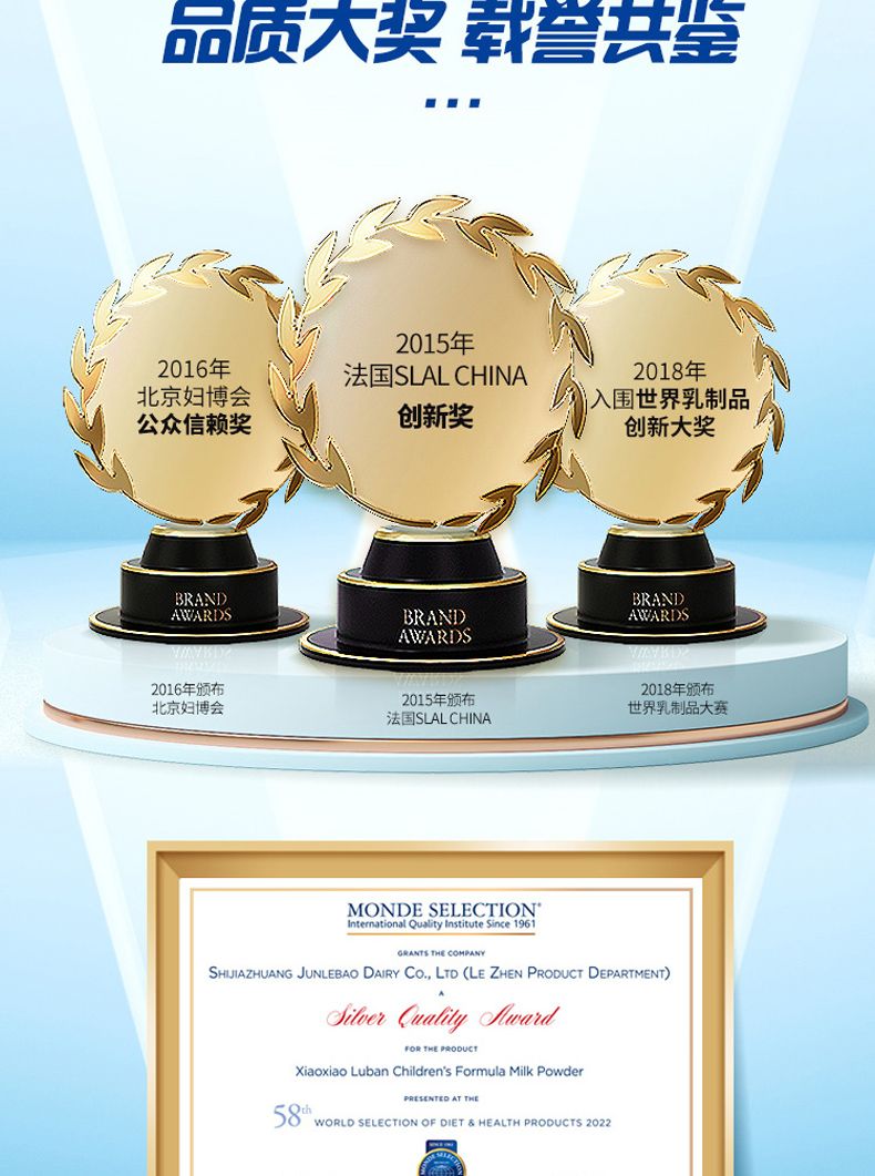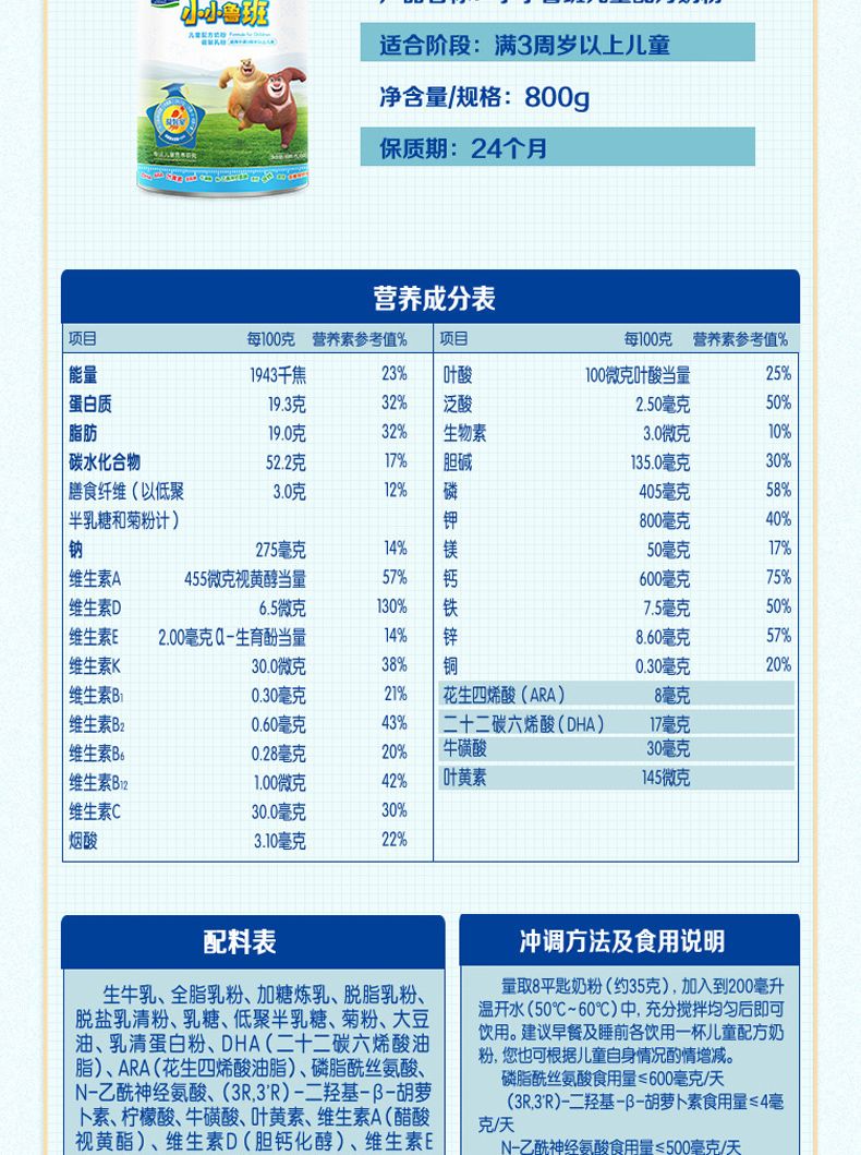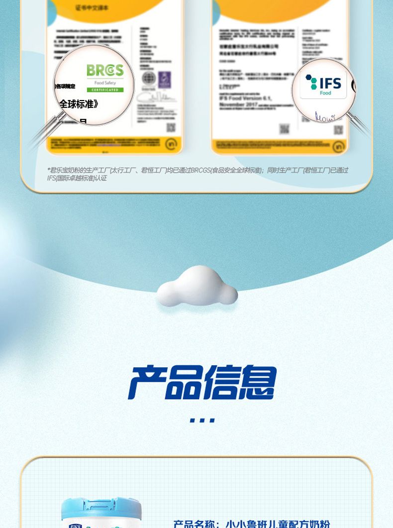 商品名称:君乐宝 小小鲁班牛奶粉 4段 3岁以上 800g*2罐