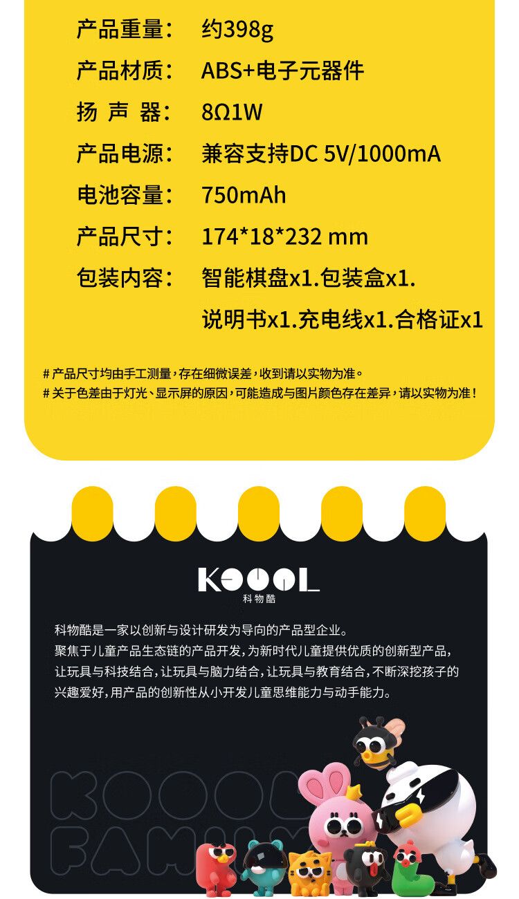 商品名称:科物酷 思维训练智能棋盘K50黄色