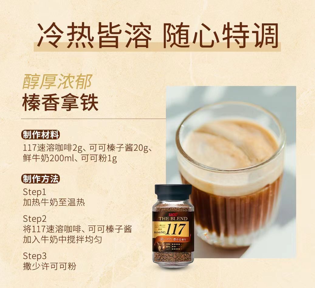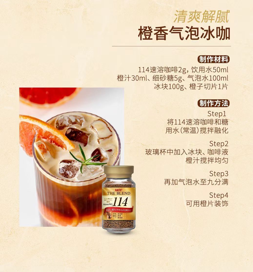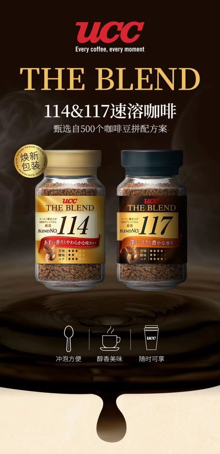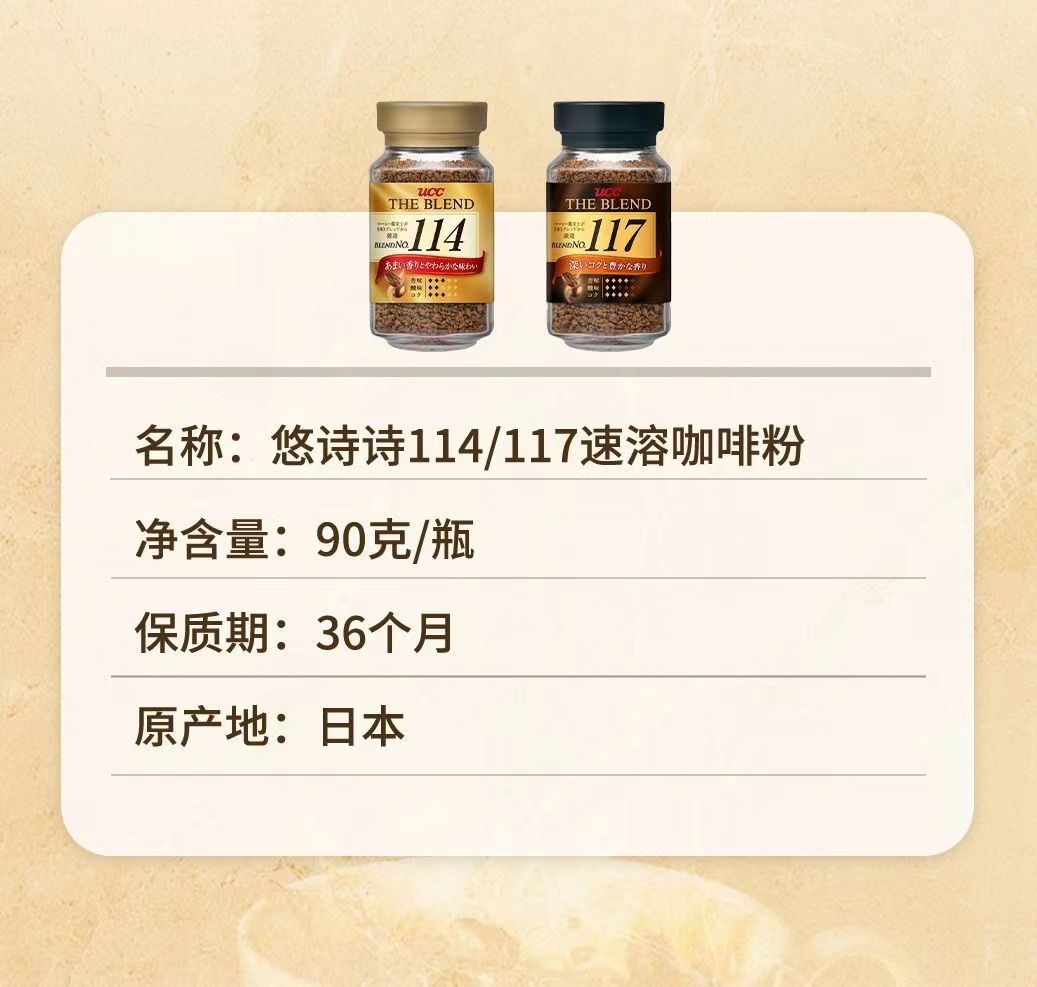 商品名称:日本进口UCC悠诗诗117速溶冻干纯黑咖啡粉114美式无蔗糖90g瓶装