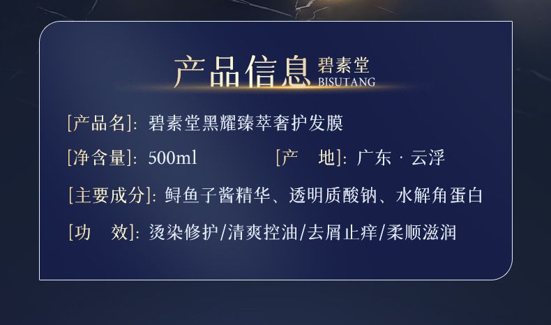商品名称:碧素堂黑耀臻萃奢护发膜500ml