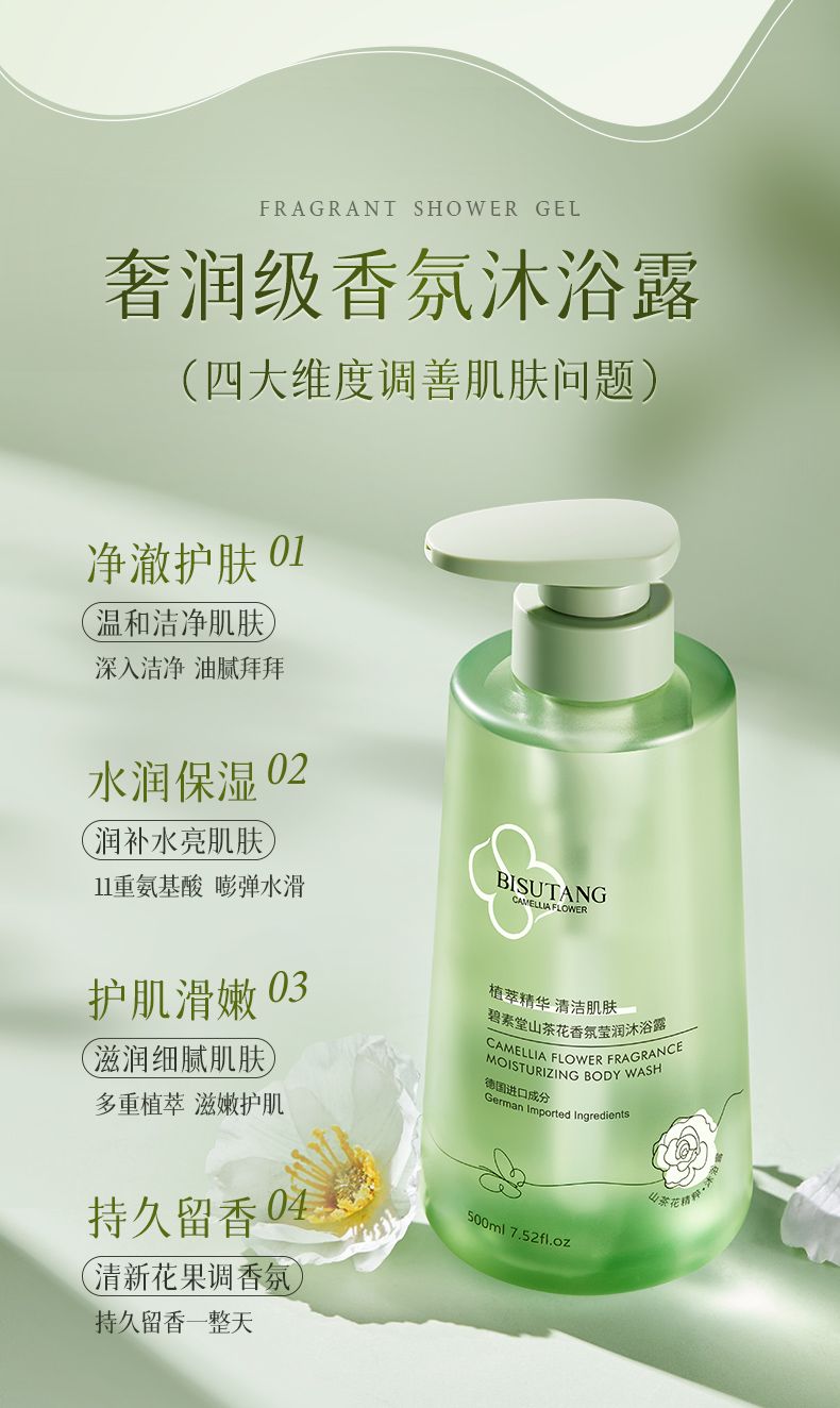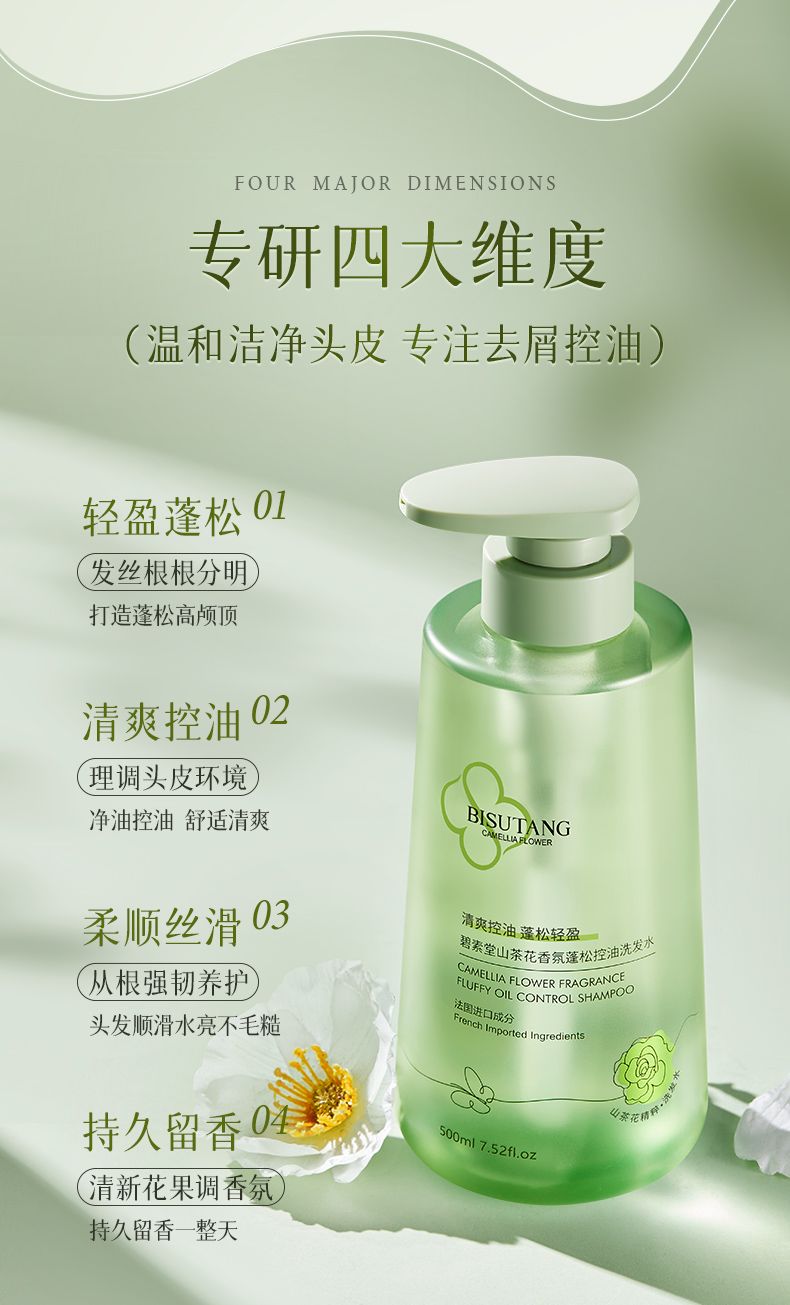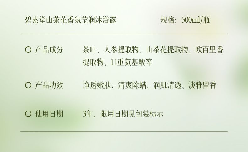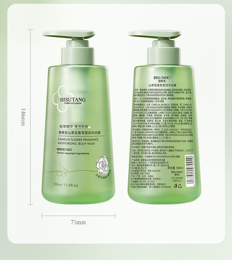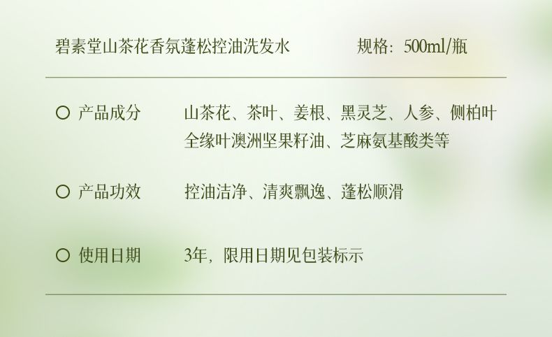 商品名称:碧素堂山茶花香氛沐浴露/蓬松控油洗发水/柔顺保湿护发乳500ml