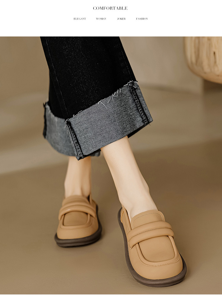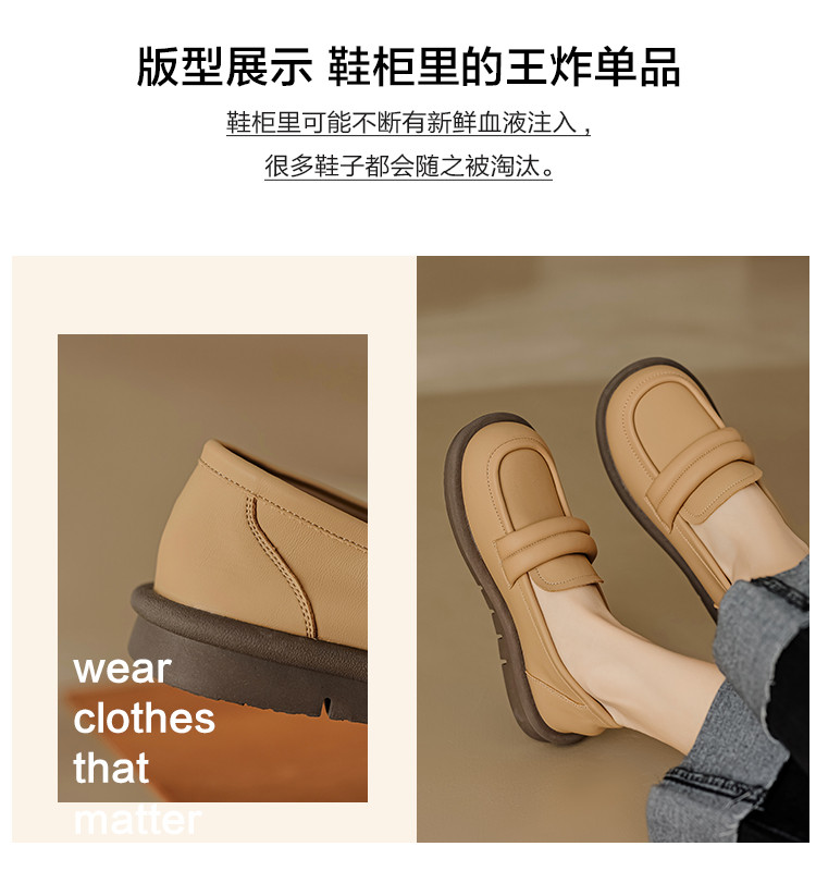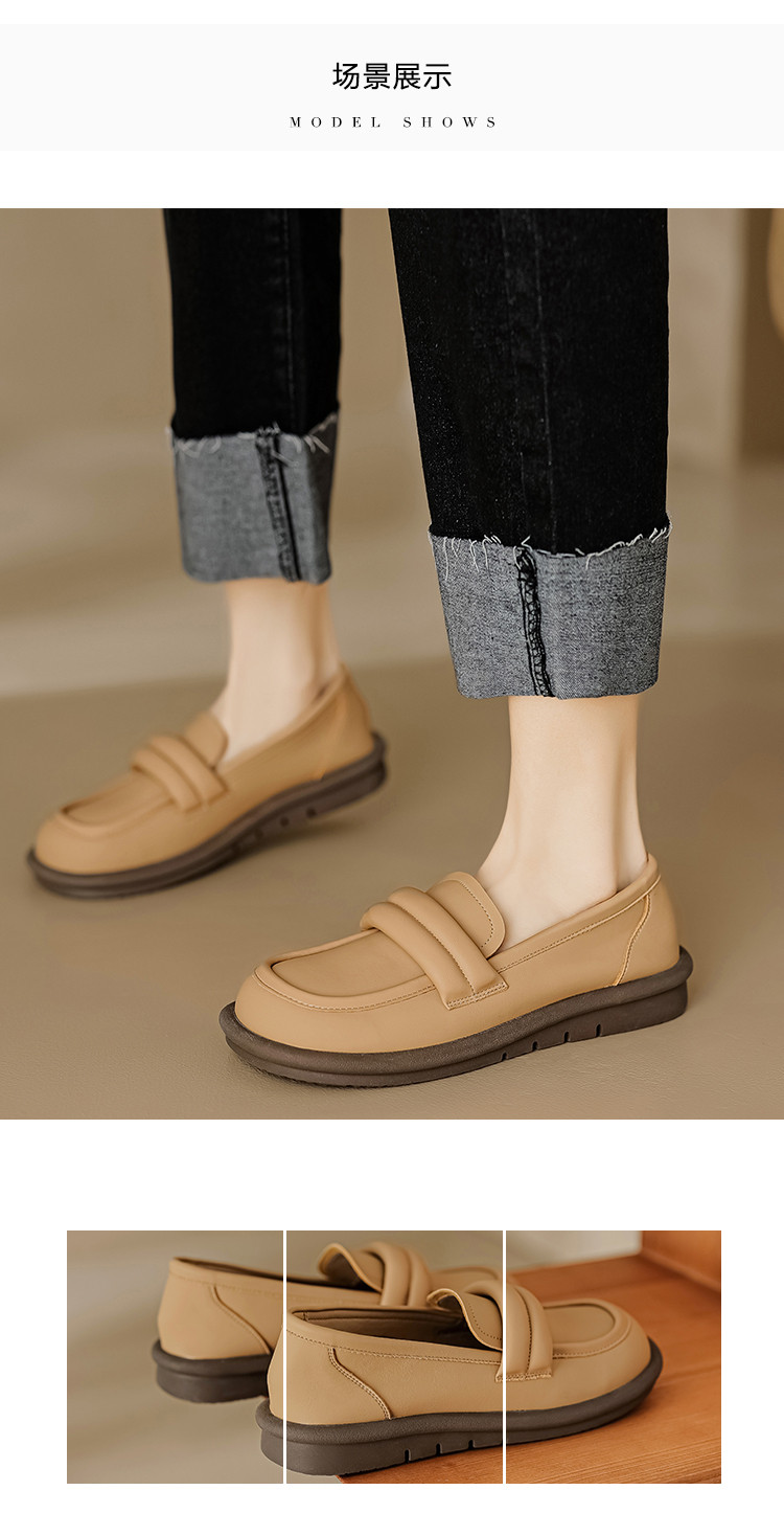 春美拉德色系通勤舒适软底圆头面包乐福鞋女单鞋 658817