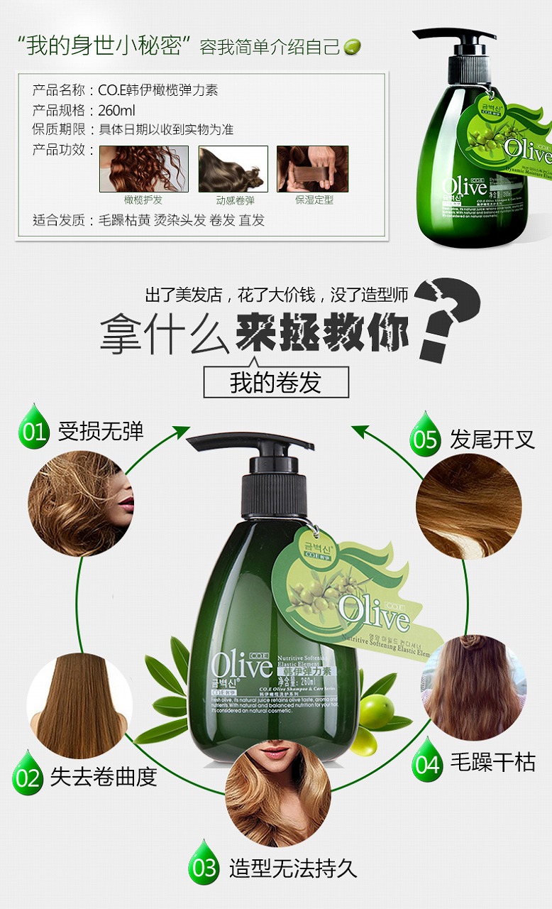 商品名称:韩伊 橄榄弹力素 橄榄护发 保湿定型 260ml