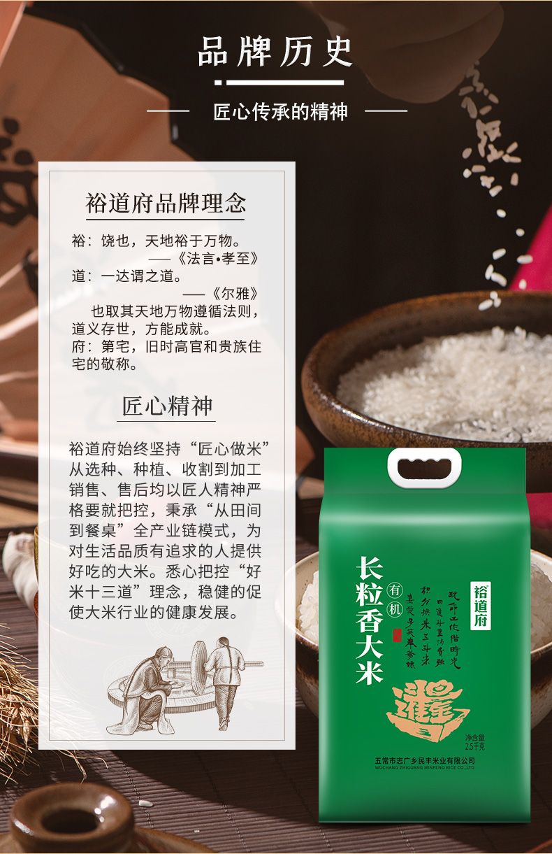 商品名称:裕道府 日进斗金 有机长粒香大米2.5kg 双层真空包装