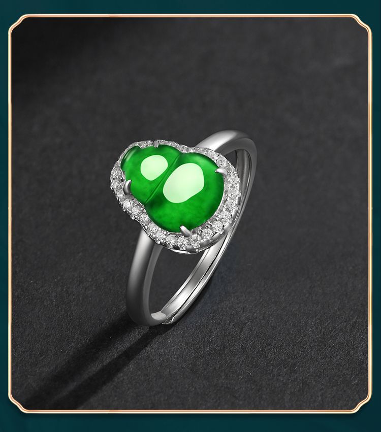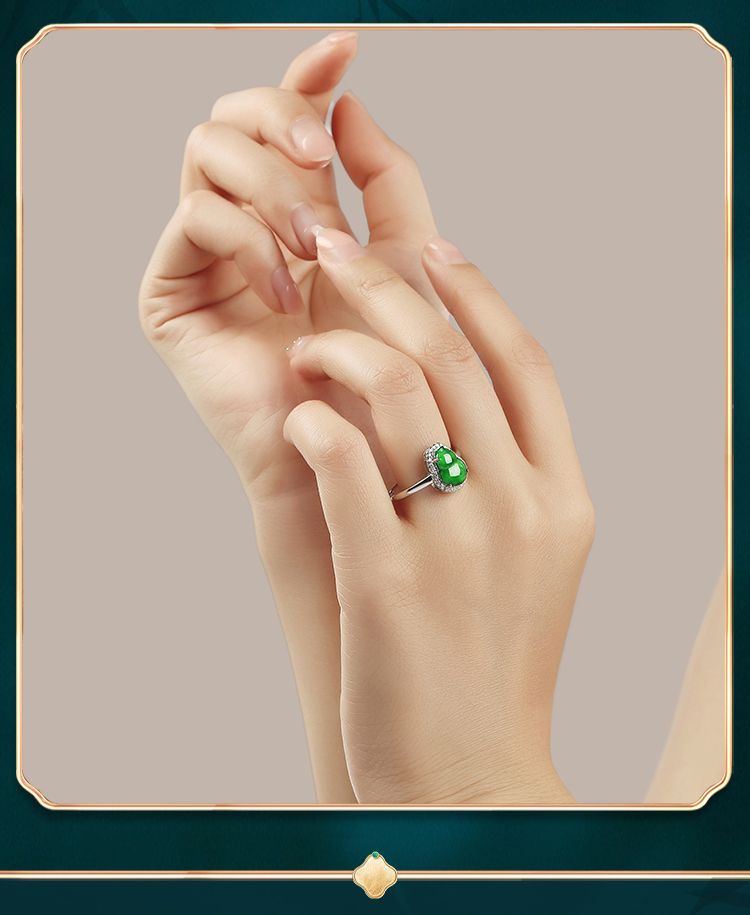 紫慕璃 经典 优雅 大气 蛋面 糯冰 阳绿翡翠戒指 女款