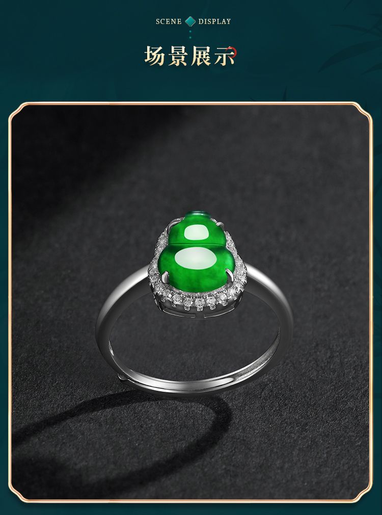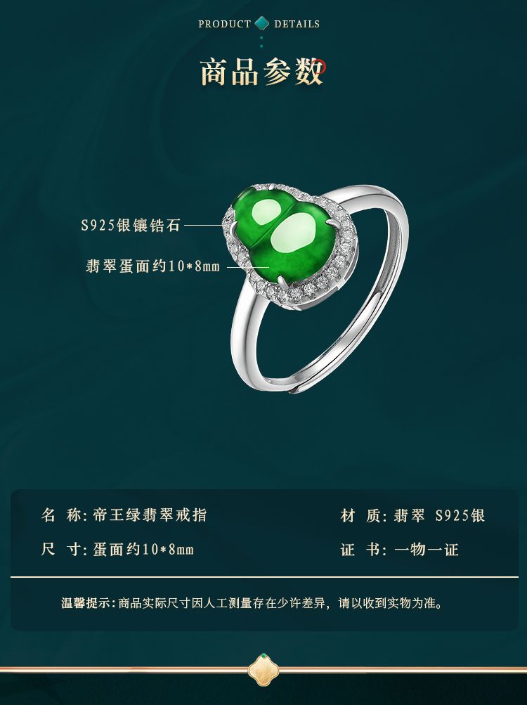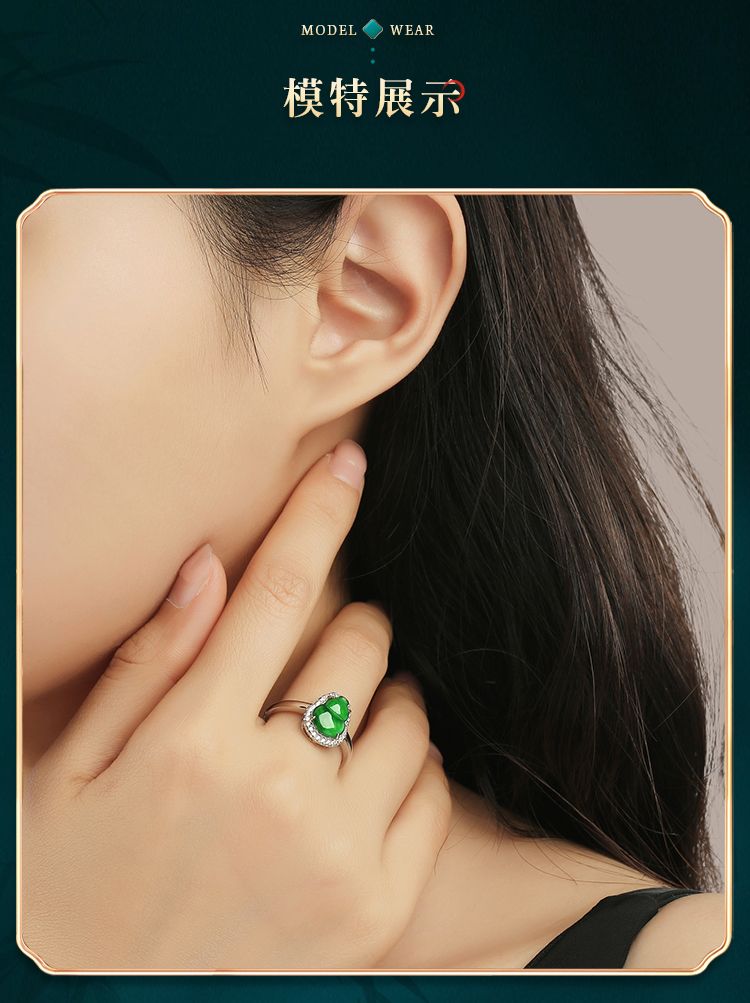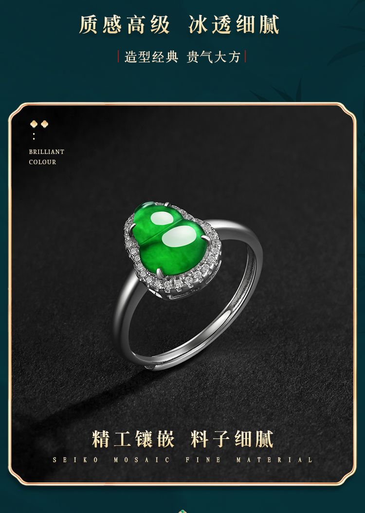 商品名称:紫慕璃 经典 优雅 大气 蛋面 糯冰 阳绿翡翠戒指 女款