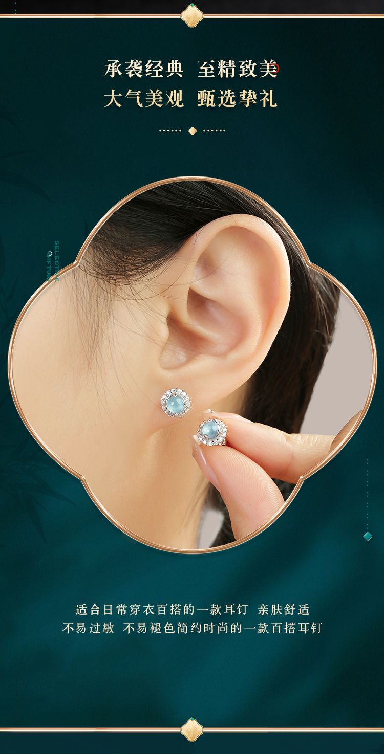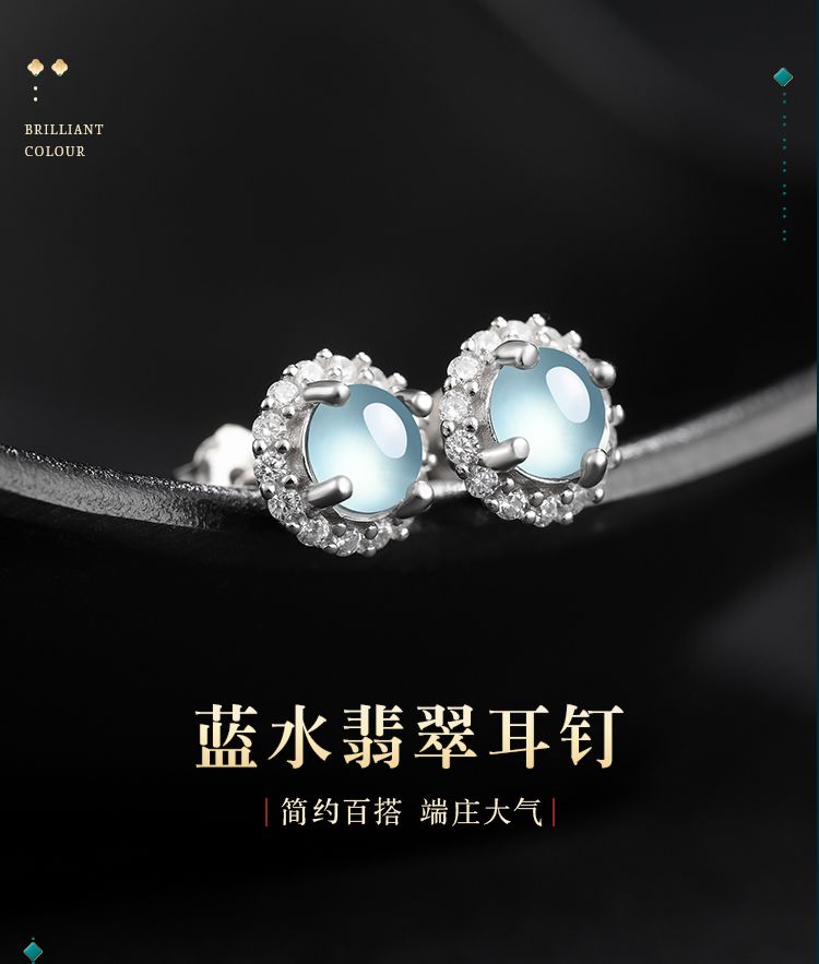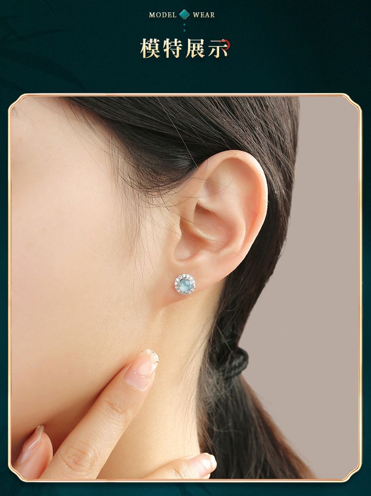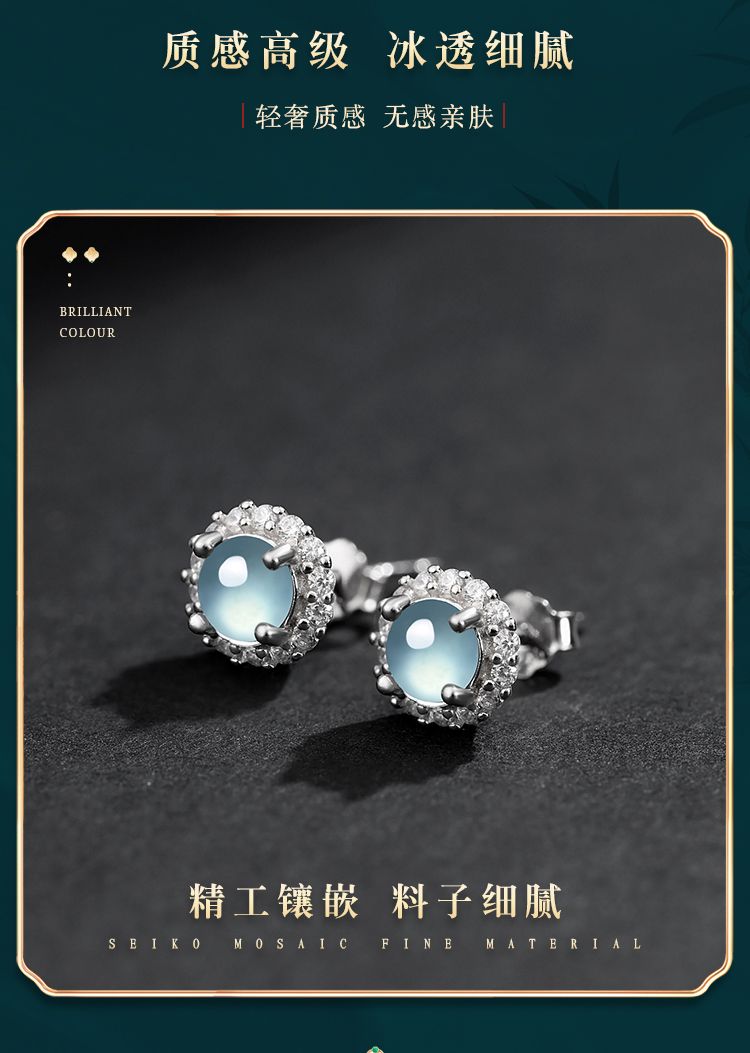 商品名称:紫慕璃 轻奢简约小众设计冰润蓝水 糯冰 翡翠耳钉 女款