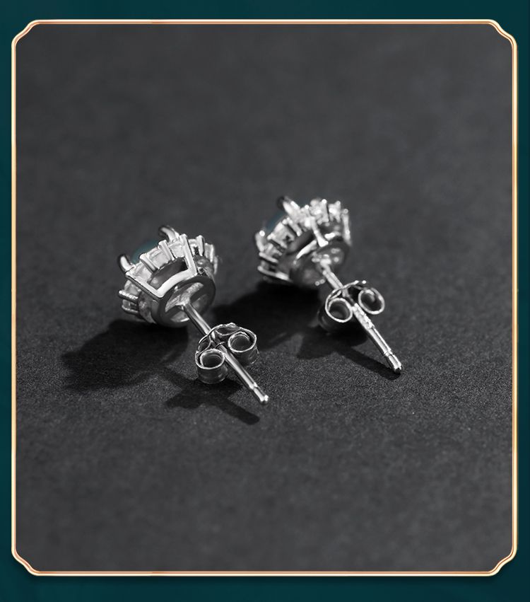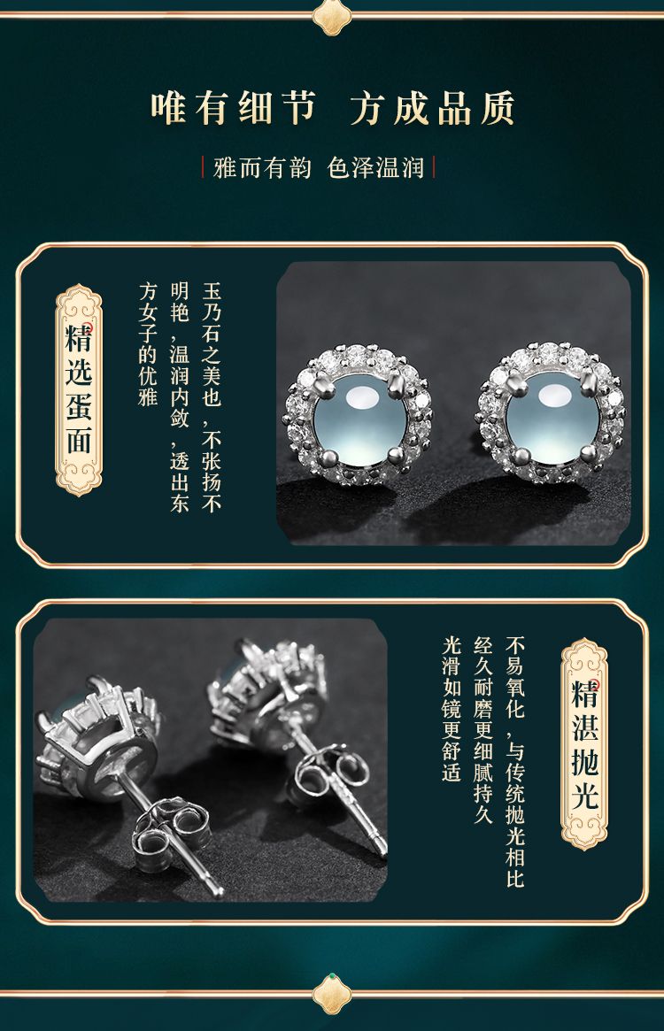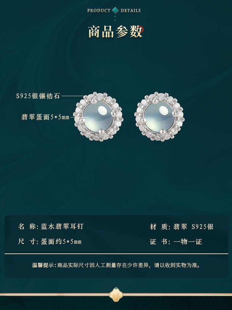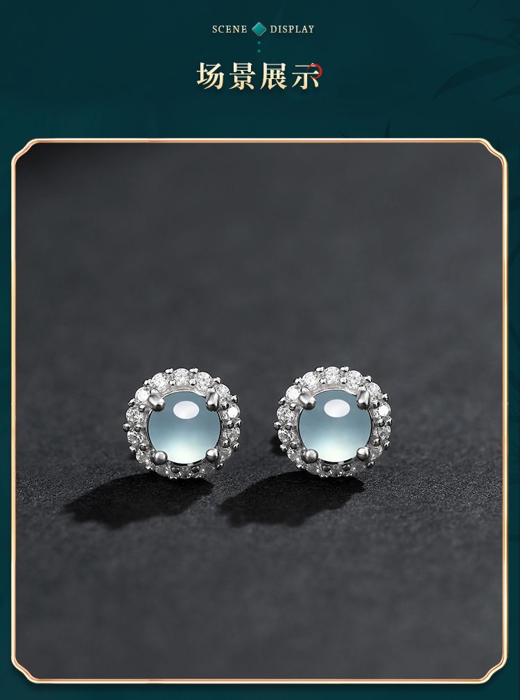 商品名称:紫慕璃 轻奢简约小众设计冰润蓝水 糯冰 翡翠耳钉 女款