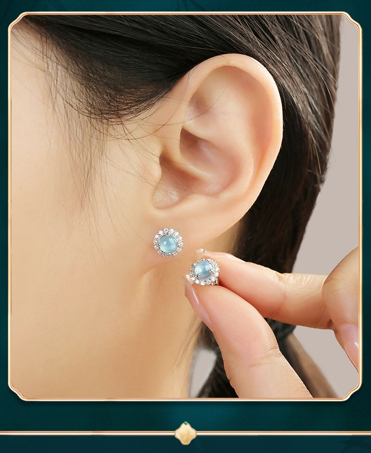 紫慕璃 轻奢简约小众设计冰润蓝水 糯冰 翡翠耳钉 女款