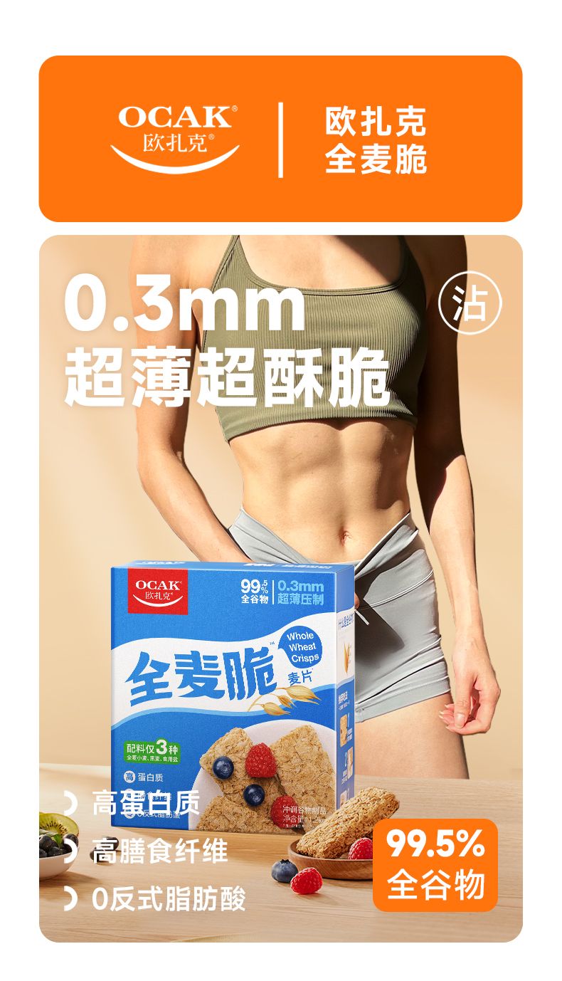 1.2千克欧扎克全麦脆麦片(0添加蔗糖)+120克奇亚籽8黑/9红随机即食冲调麦片*2