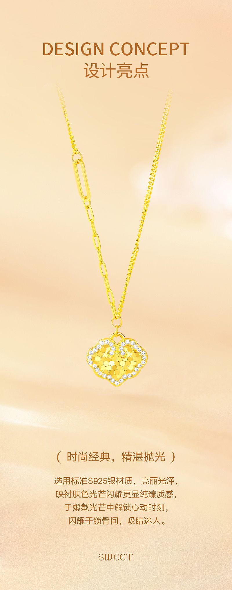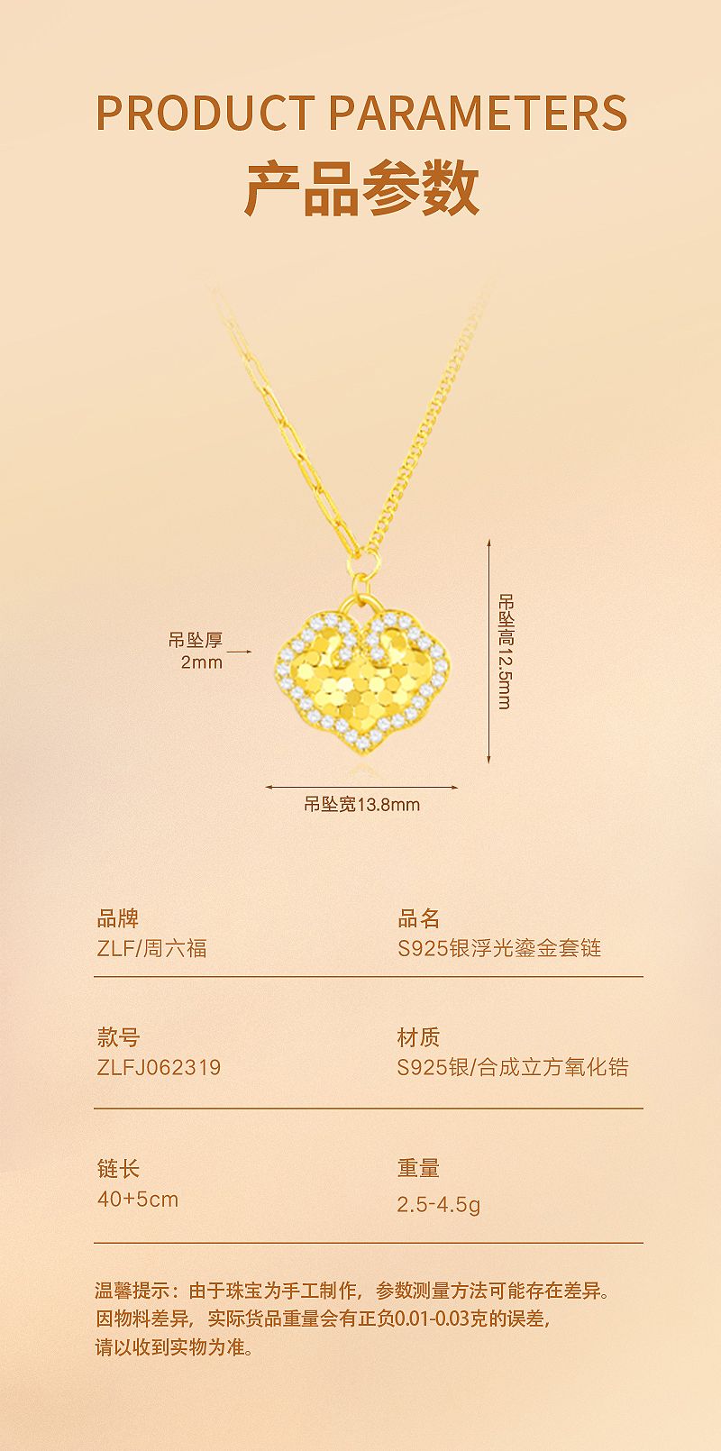周六福S925银浮光鎏金套链