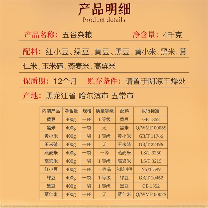 商品名称:裕道府 五谷杂粮礼盒4kg(400g*10种杂粮)