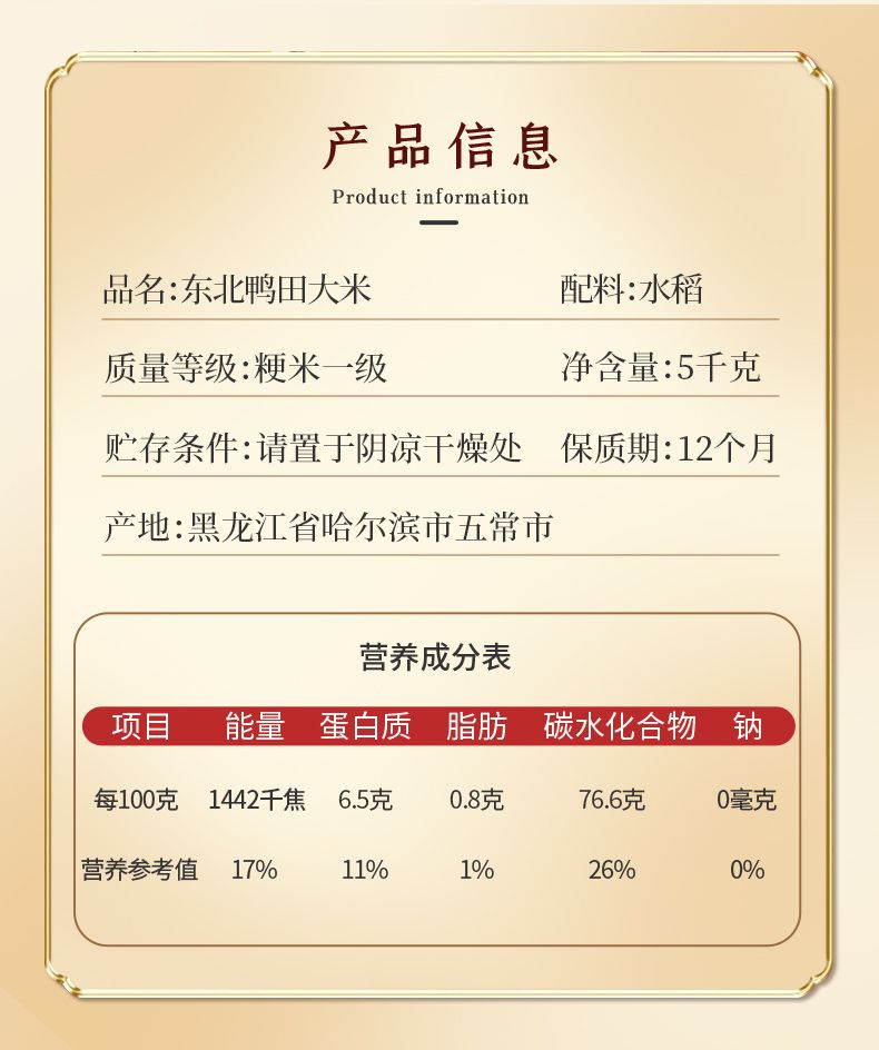 商品名称:裕道府 日进斗金 东北鸭田大米5kg