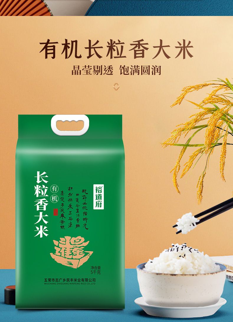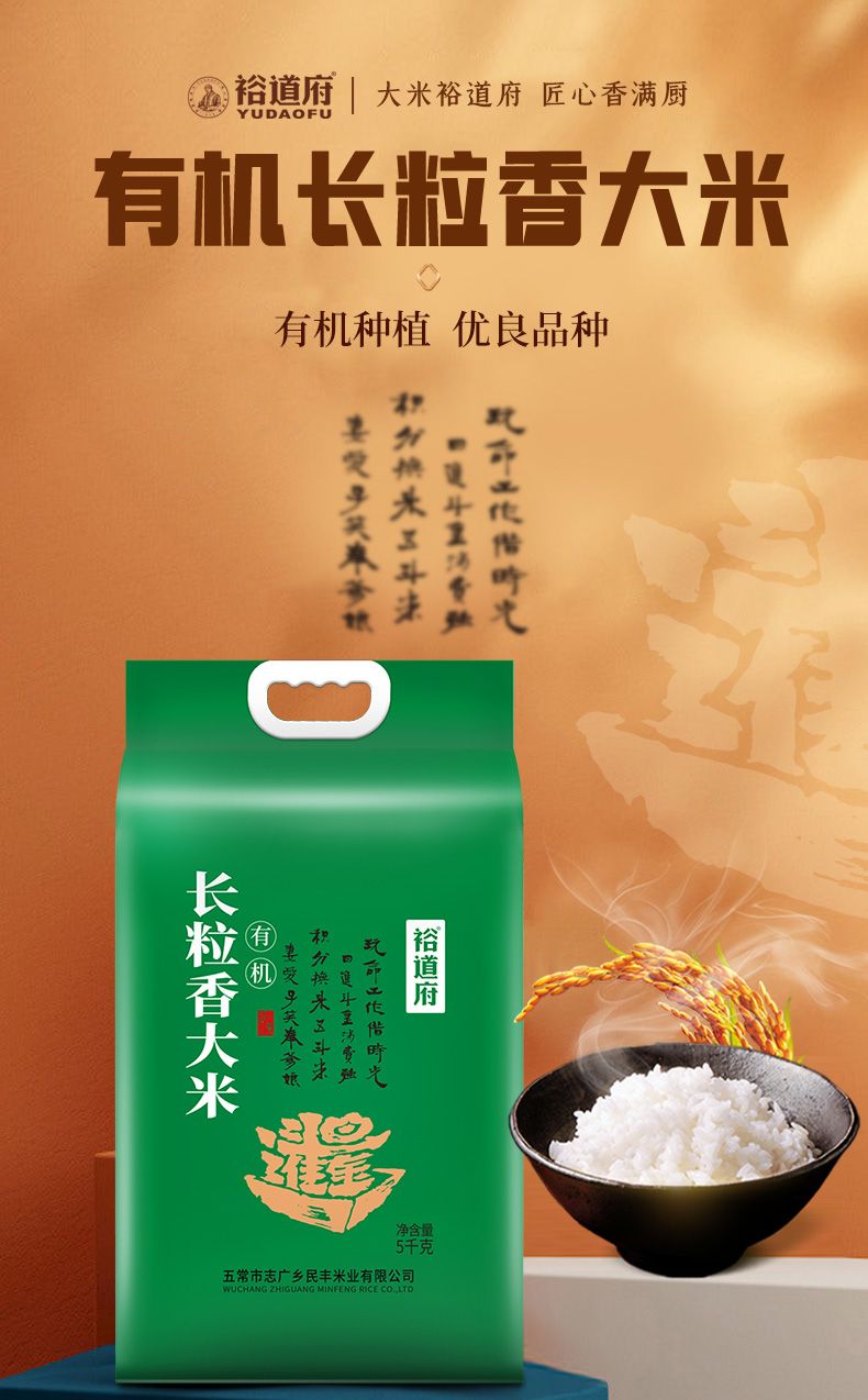 商品名称:裕道府 日进斗金 有机长粒香东北大米5kg 双层真空包装