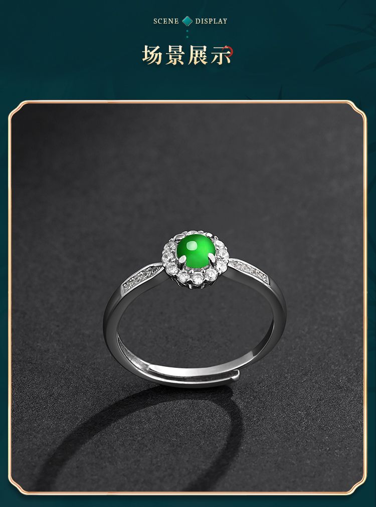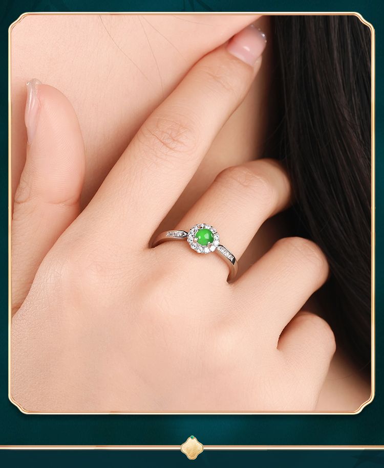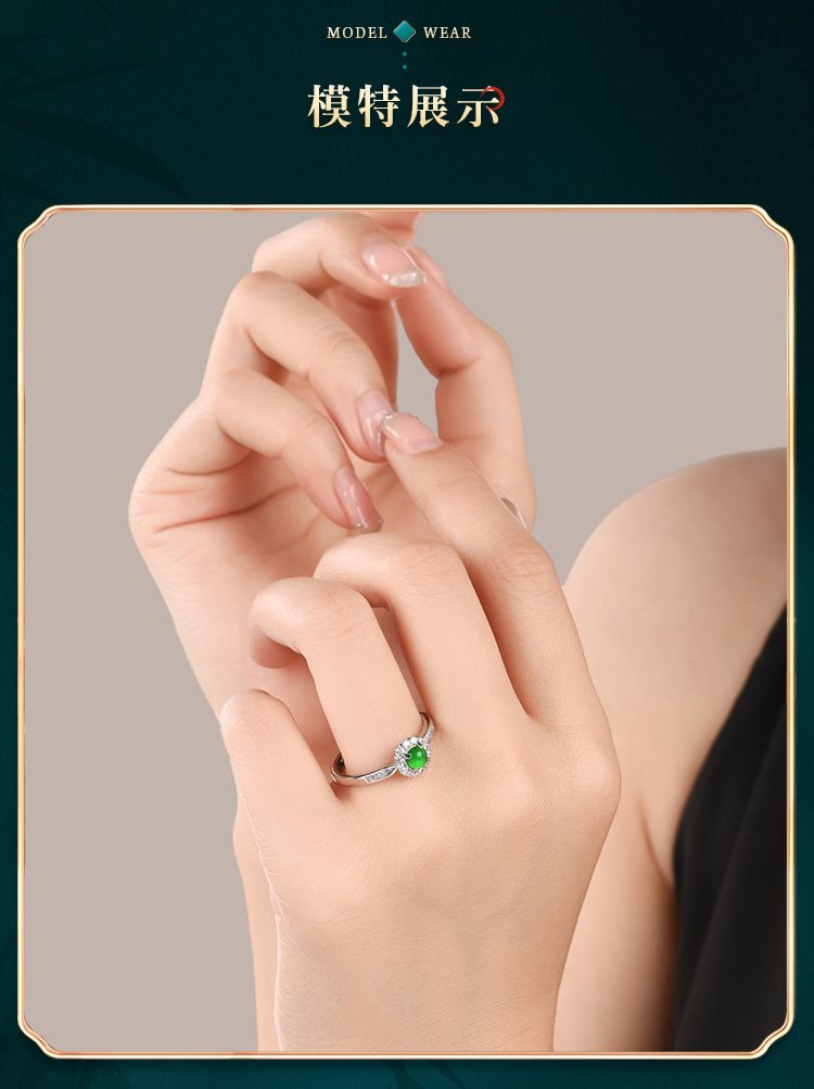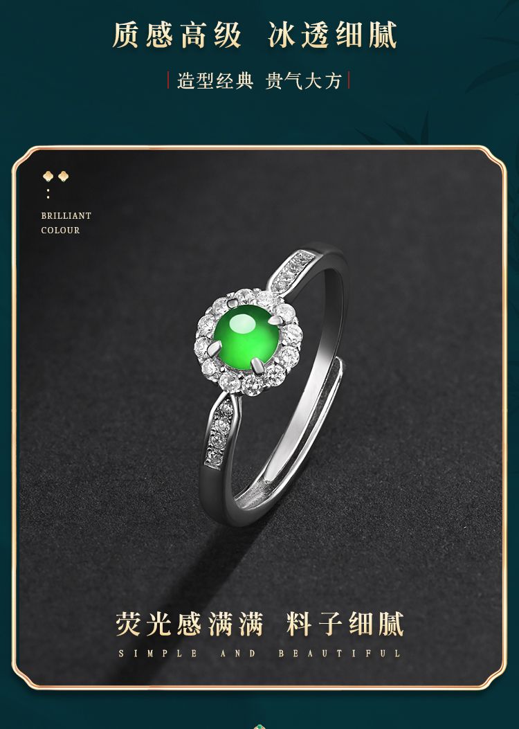 商品名称:紫慕璃 经典 优雅 大气 蛋面 糯冰 阳绿翡翠戒指 女款