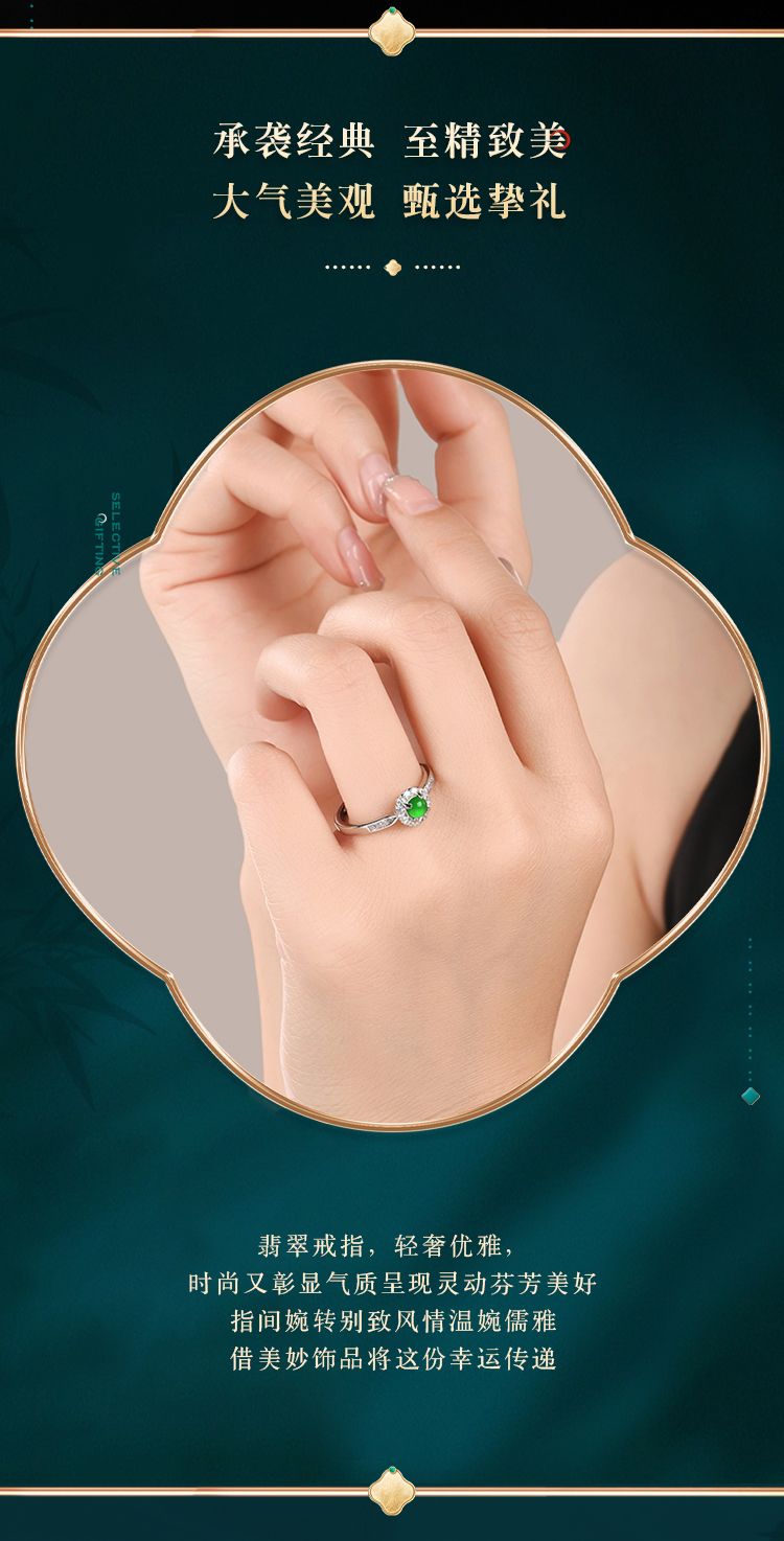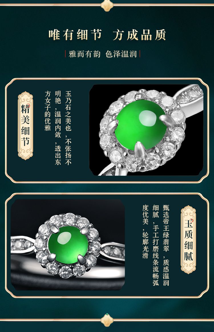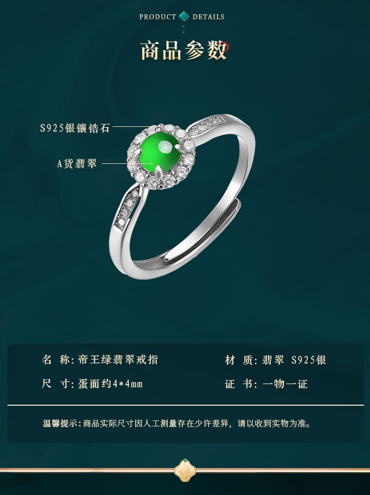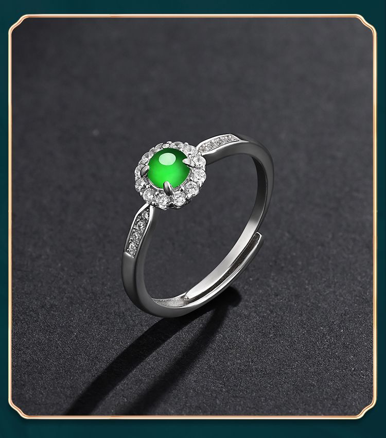 商品名称:紫慕璃 经典 优雅 大气 蛋面 糯冰 阳绿翡翠戒指 女款
