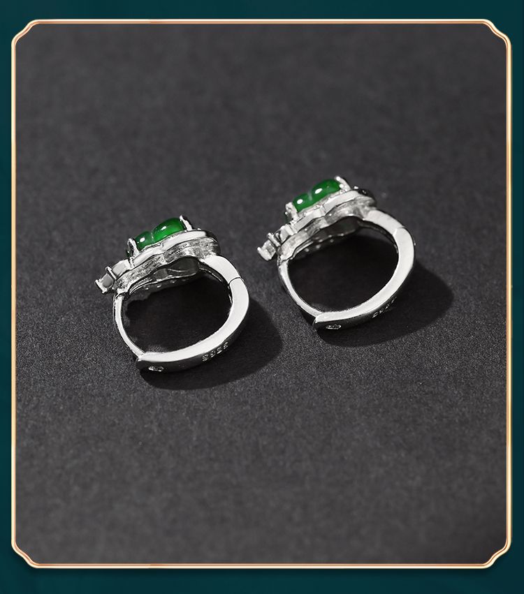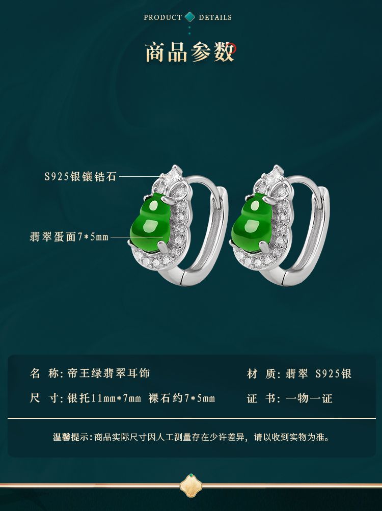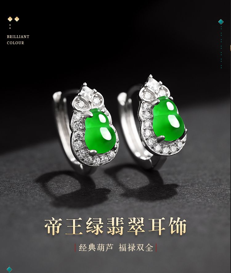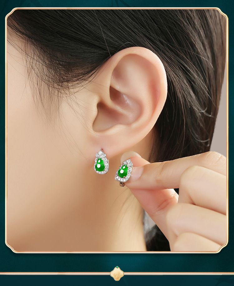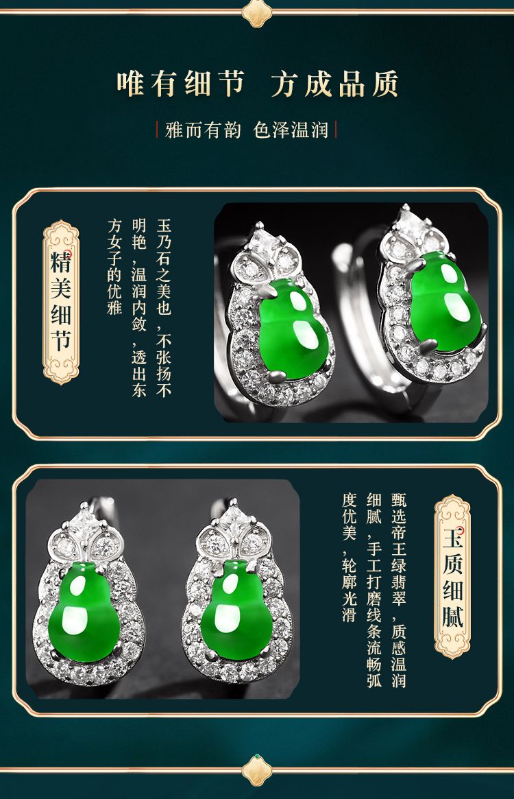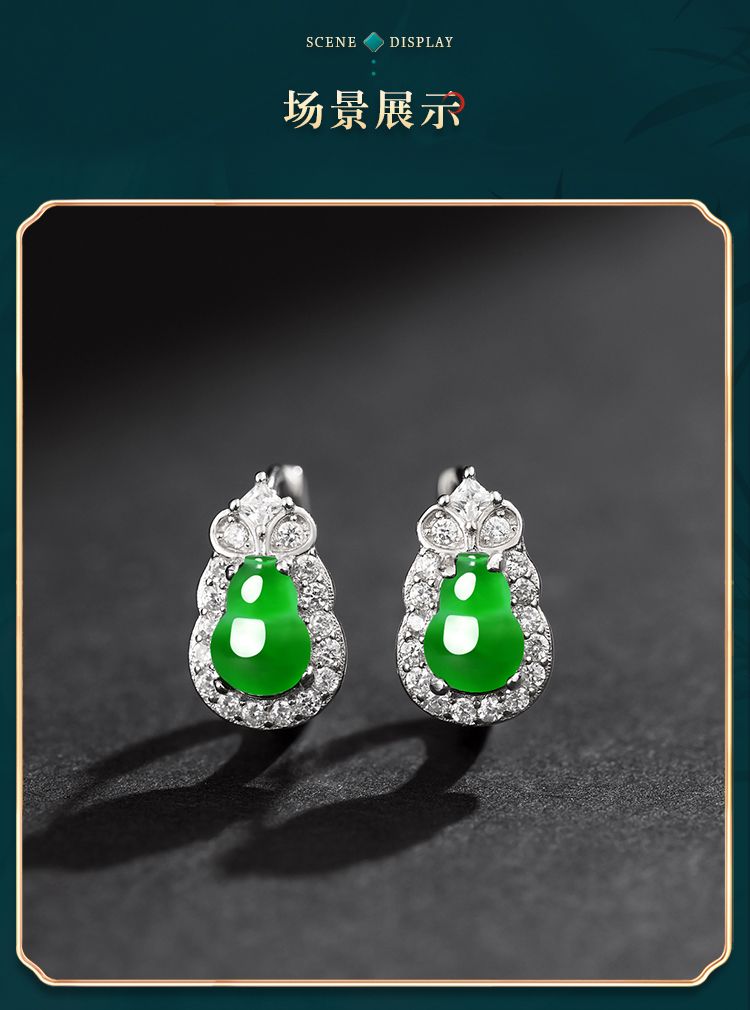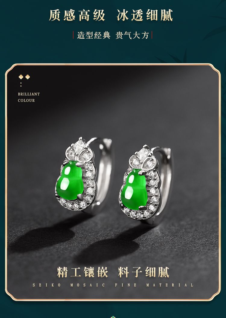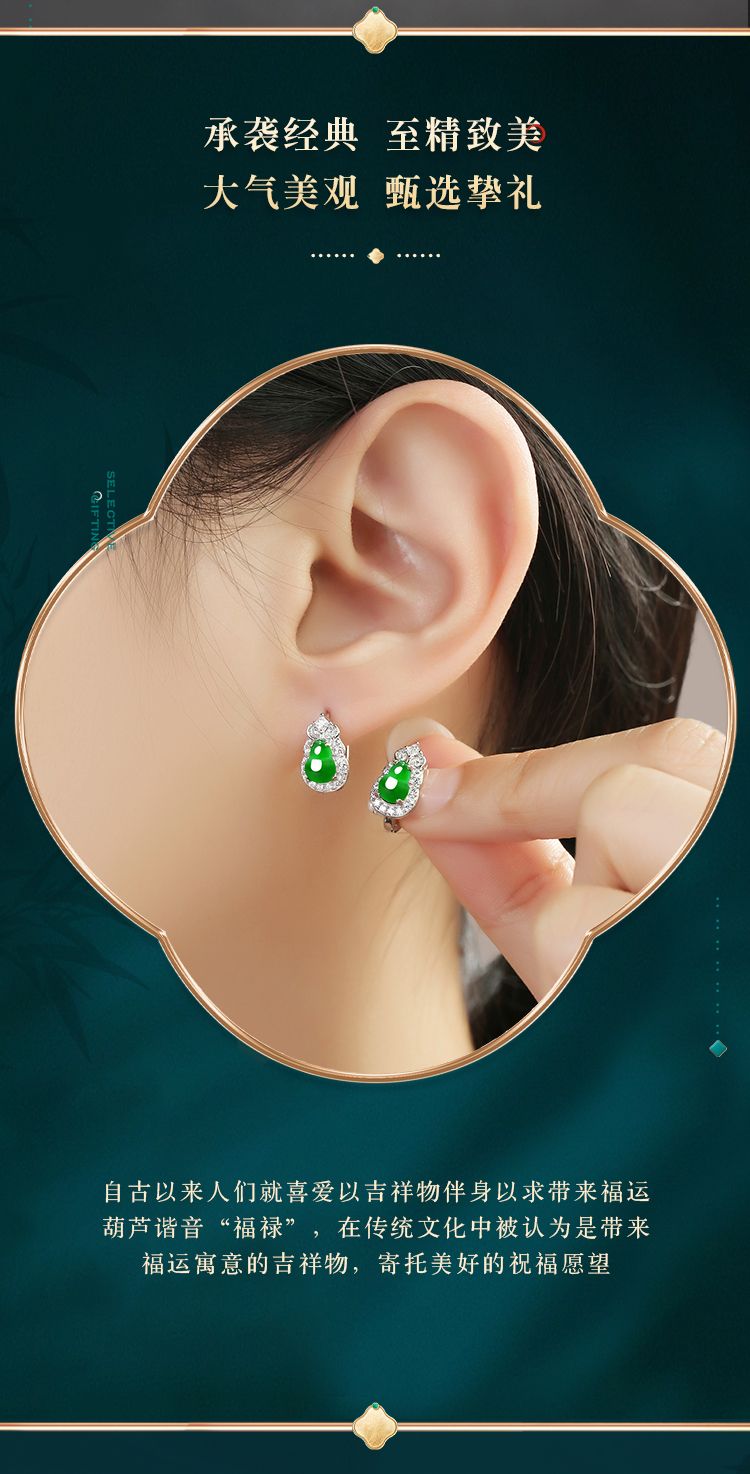 商品名称:紫慕璃 国风福禄葫芦阳绿 糯冰 翡翠耳环 女款