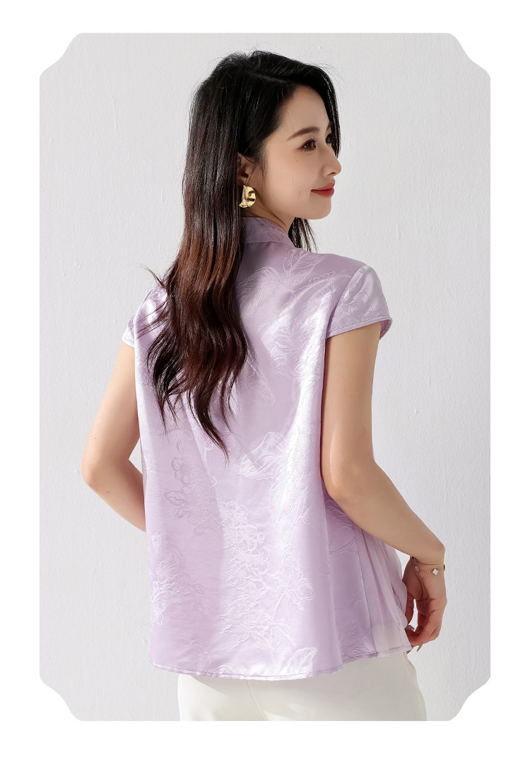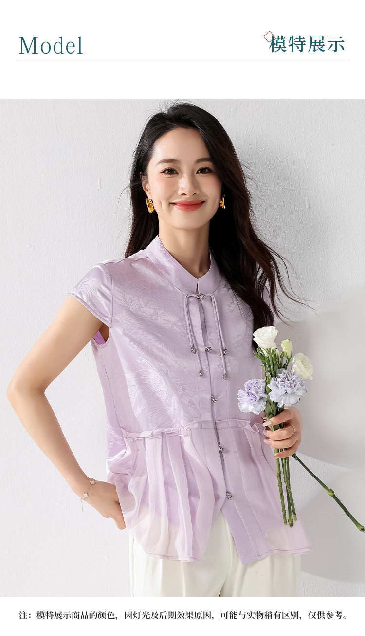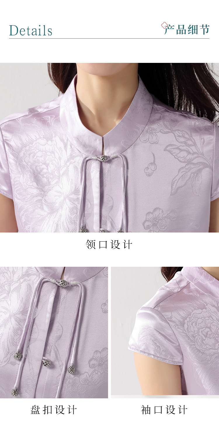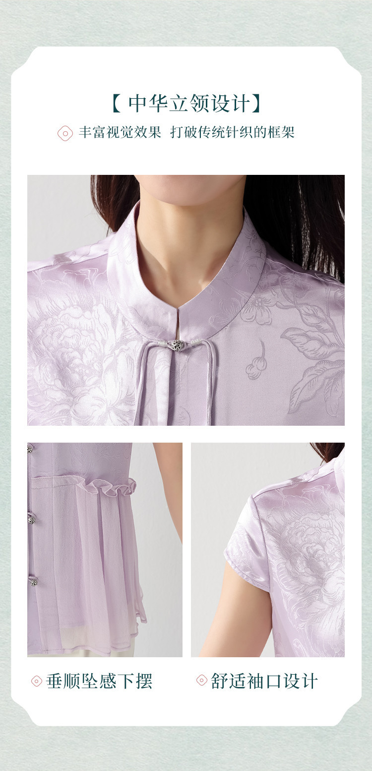 商品名称:【桑蚕丝】夏复古气质国风真丝短袖衬衫T恤小衫19姆米 457427