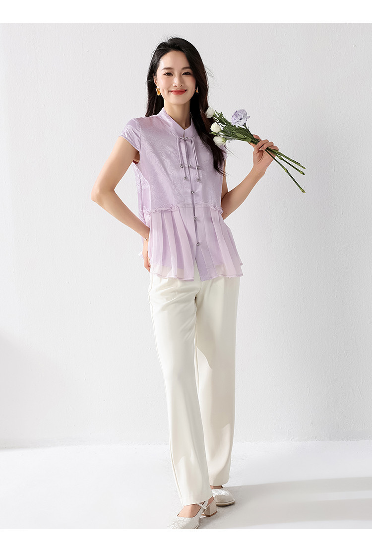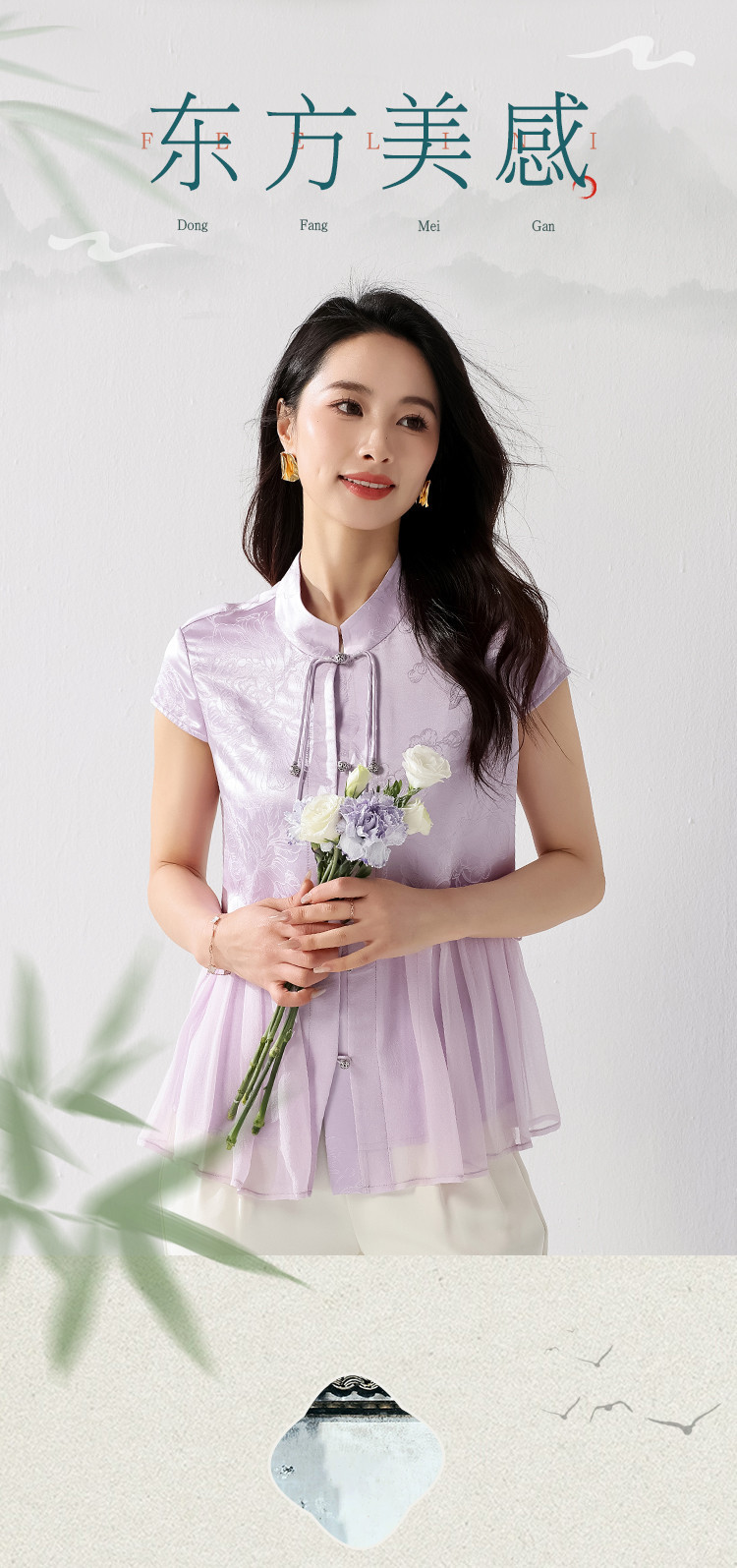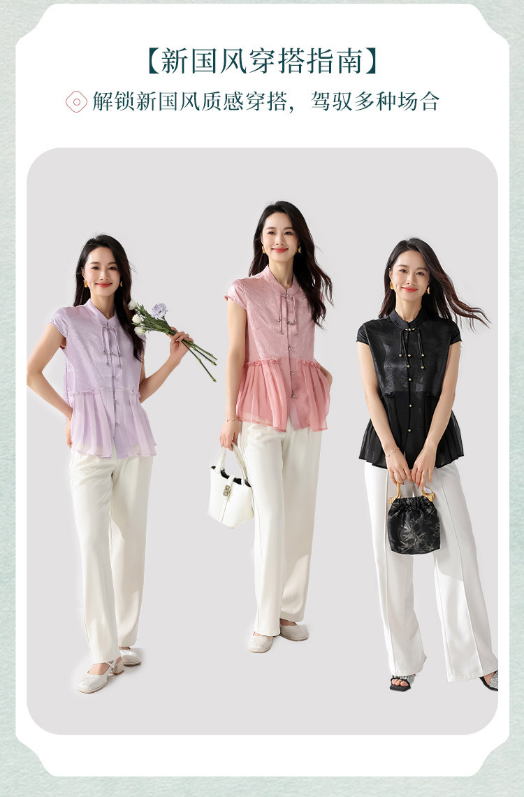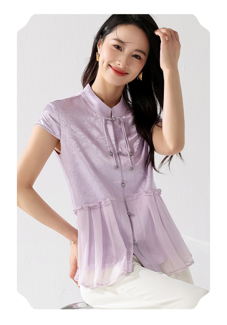 商品名称:【桑蚕丝】夏复古气质国风真丝短袖衬衫T恤小衫19姆米 457427