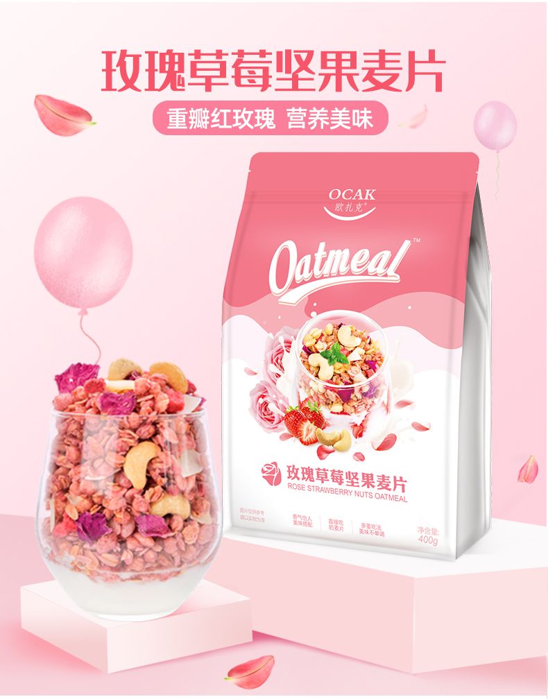 400克玫瑰草莓坚果麦片+100克草莓果粒麦片