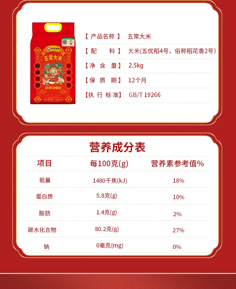 商品名称:邻家饭香 五常大米 稻花香2号 2.5kg/袋 国家地理标志农产品 二级产区黑土地种植 LJFX76