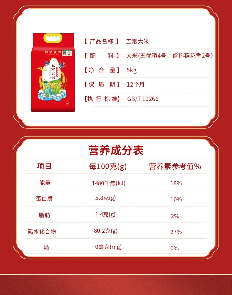 商品名称:邻家饭香 五常大米 稻花香2号 5kg/袋 国家地理标志农产品 二级产区黑土地种植 LJFX94