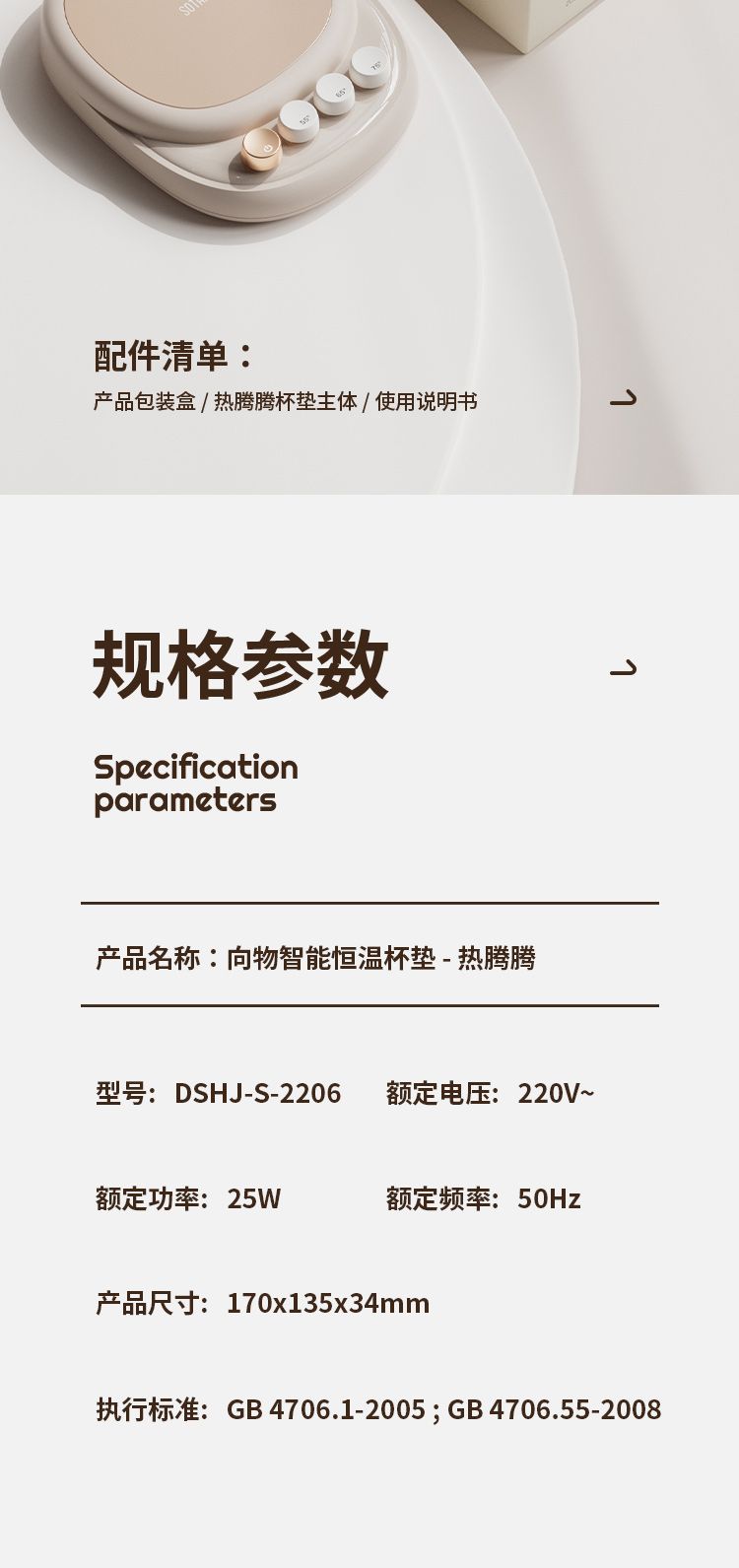 商品名称:向物智能恒温杯垫-热腾腾