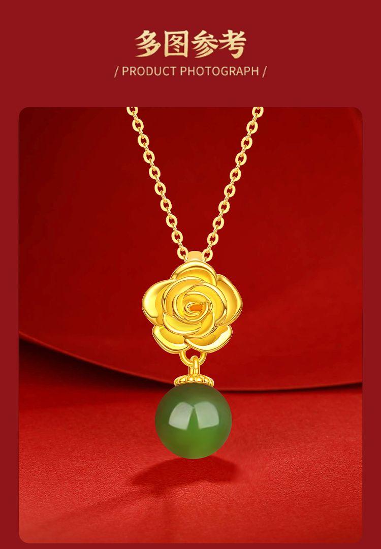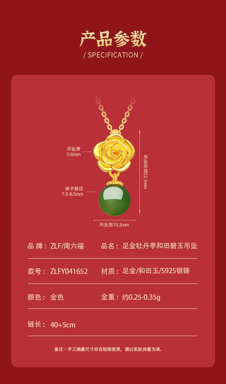 商品名称:周六福足金牡丹亭和田碧玉吊坠