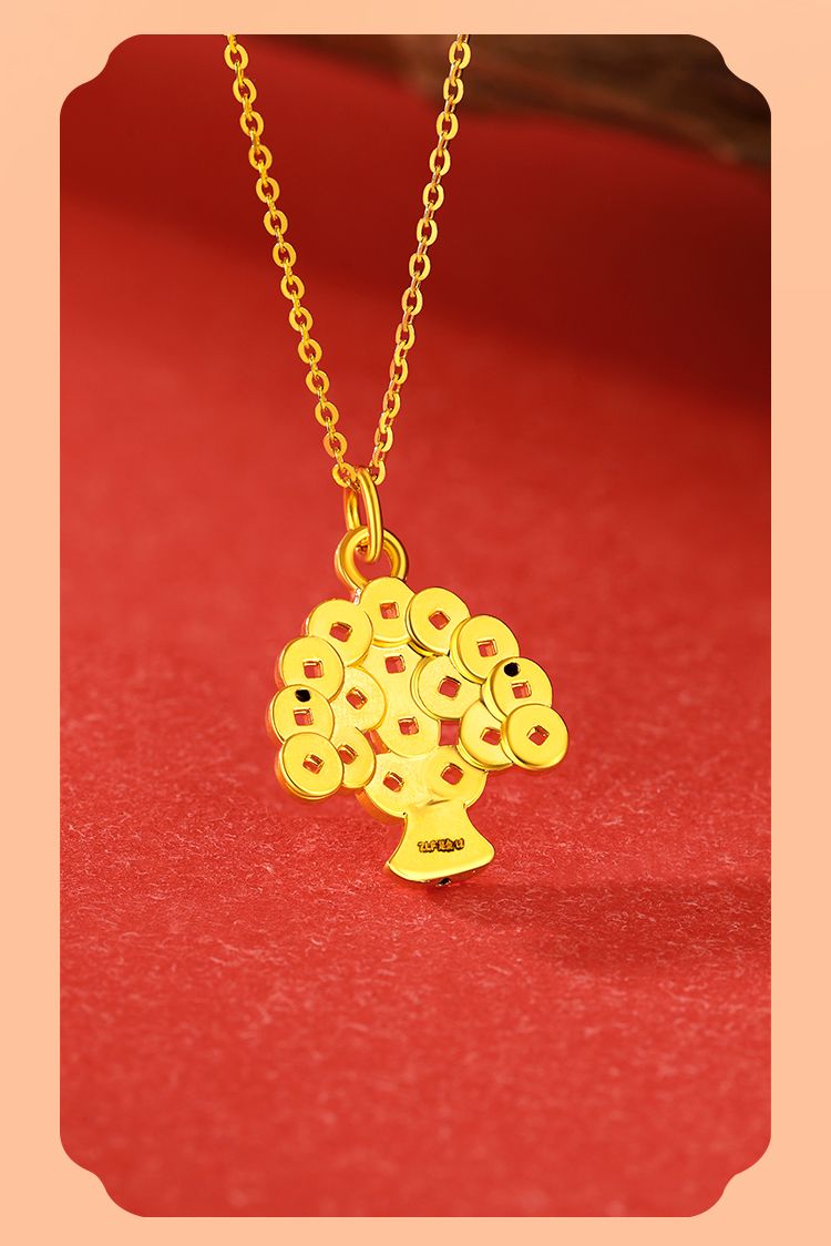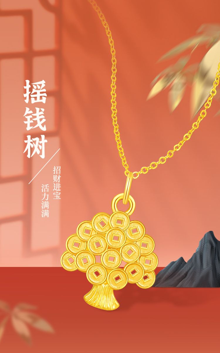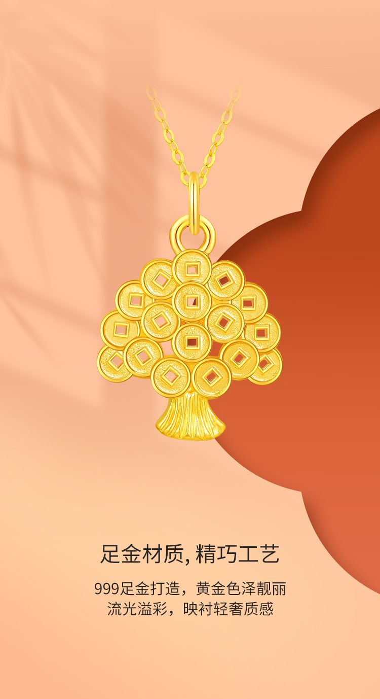 周六福摇钱树足金吊坠