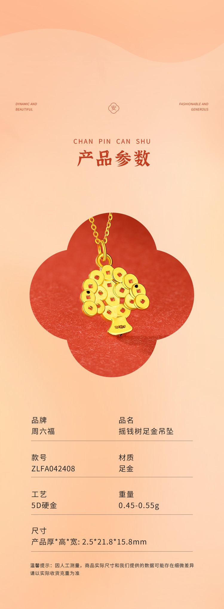 商品名称:周六福摇钱树足金吊坠