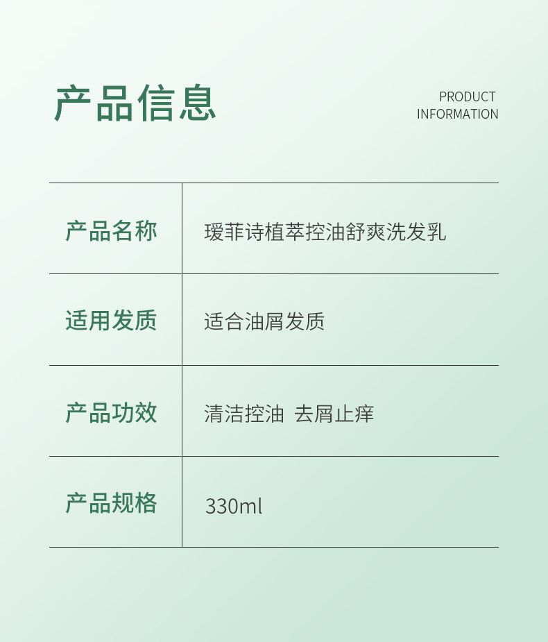 商品名称:瑷菲诗植萃控油舒爽洗发乳洗发水330ml