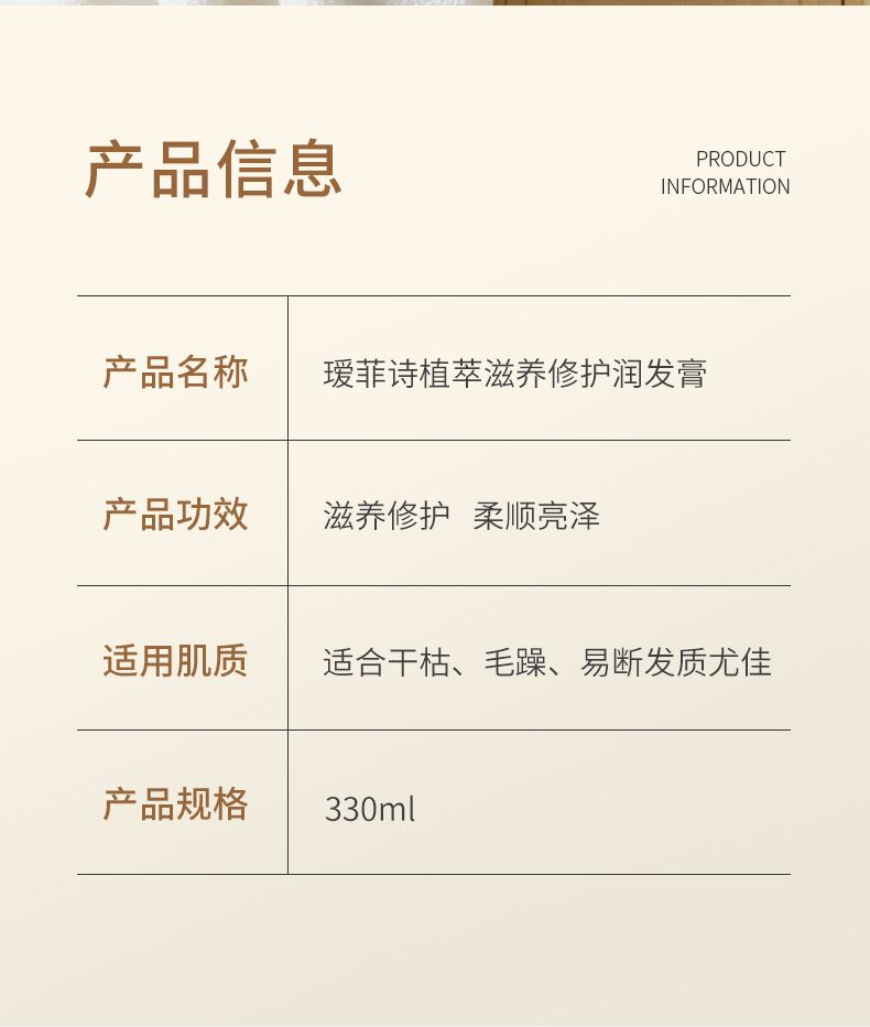 商品名称:瑷菲诗植萃滋养修护润发膏330ml
