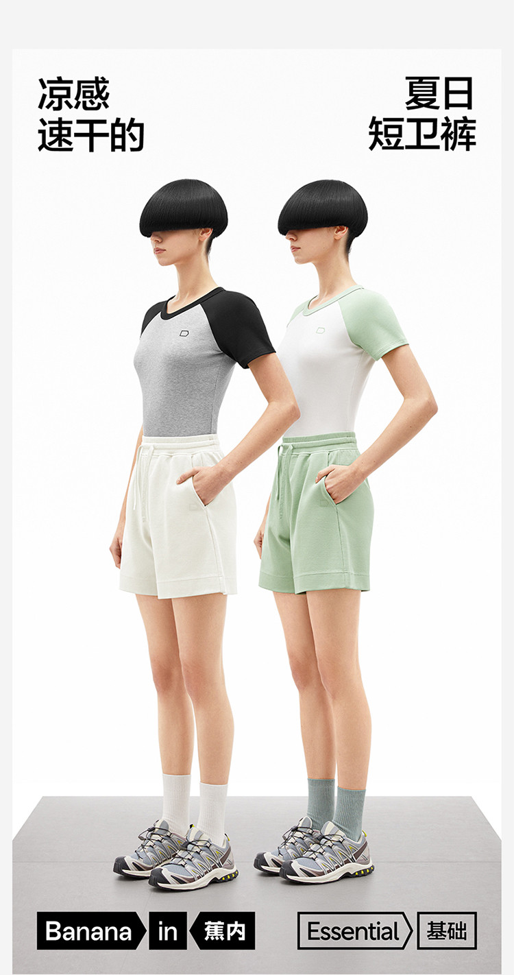 基础505Go女士短卫裤宽松棉感运动显瘦休闲外穿高腰短裤夏季 435909