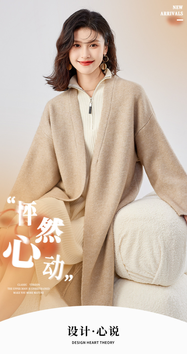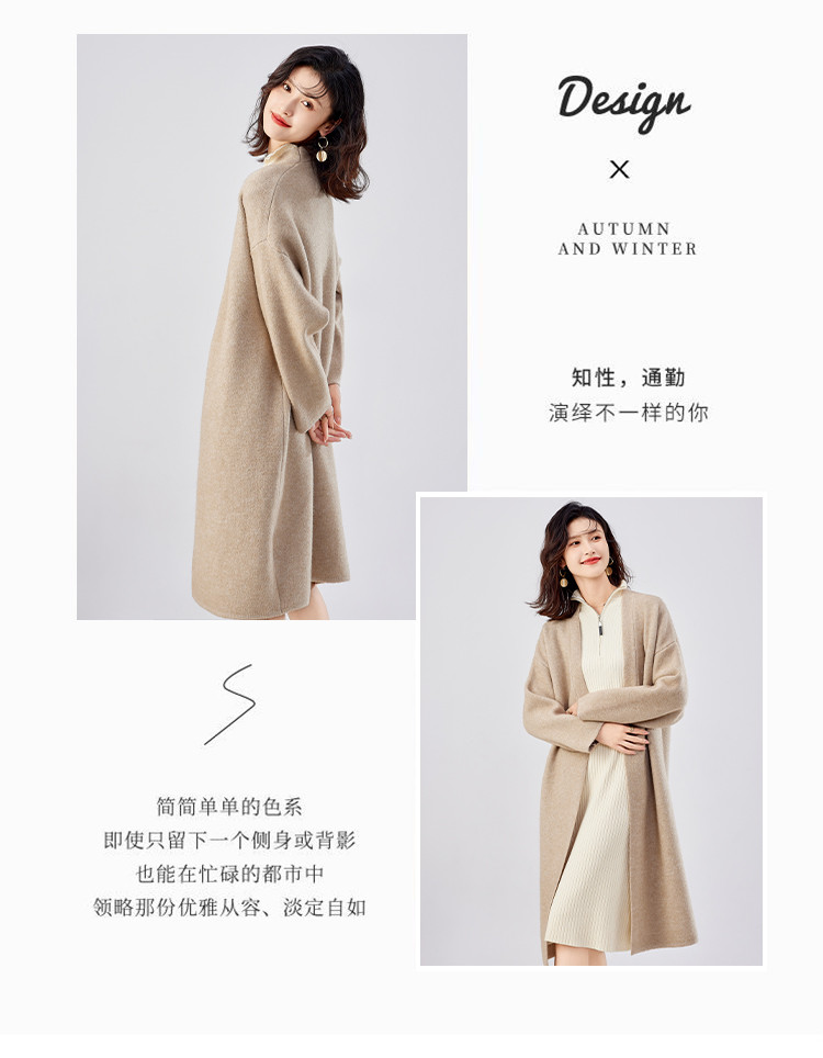 商品名称:秋冬宽松慵懒风中长款毛衣针织开衫外套女秋冬 724575
