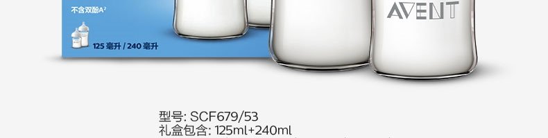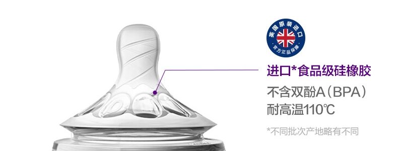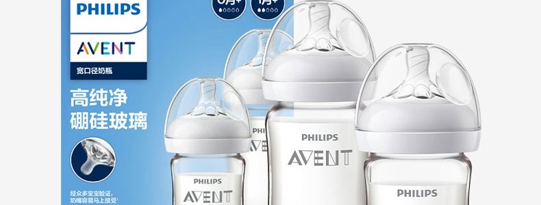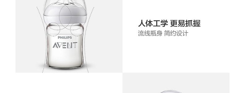 商品名称:英国 新安怡(AVENT)宽口径自然顺畅玻璃奶瓶 125ml (奶嘴0月+/新生儿流量)
