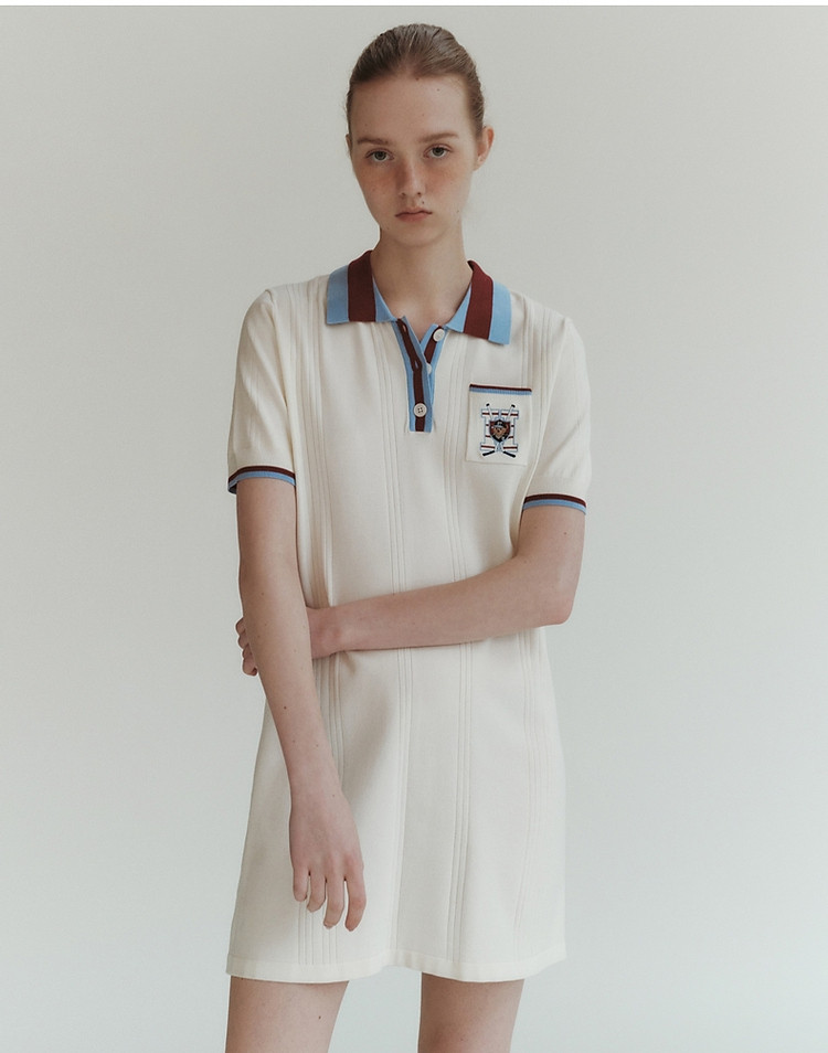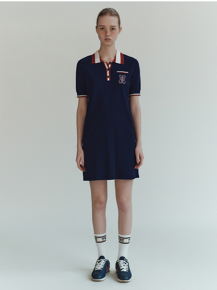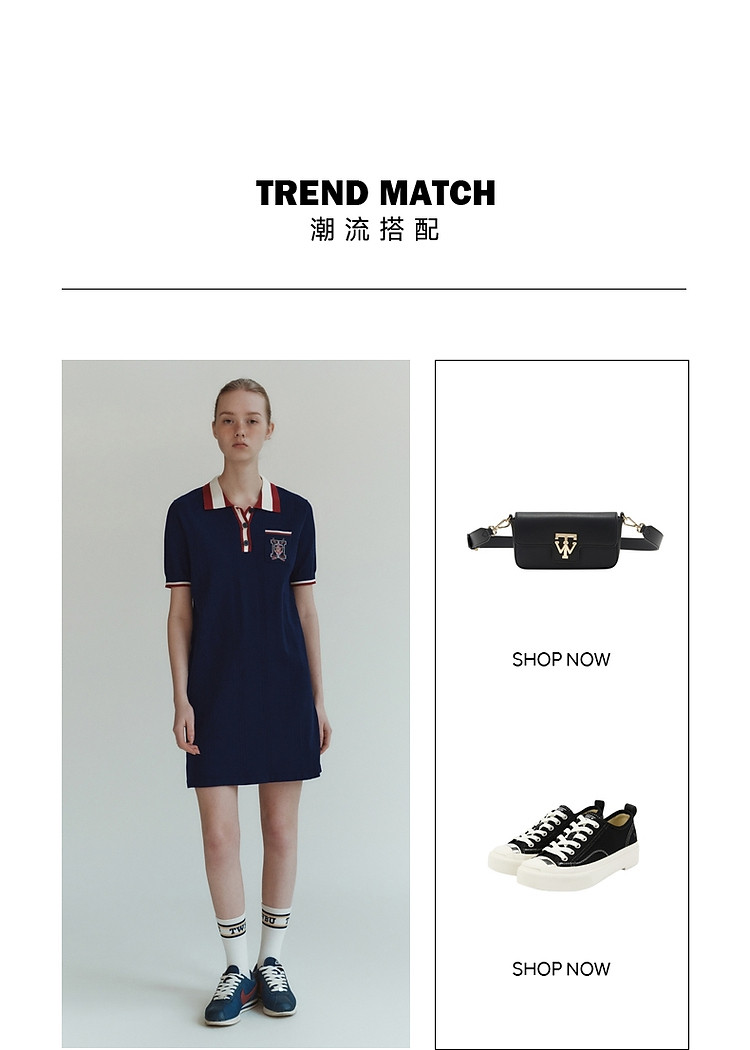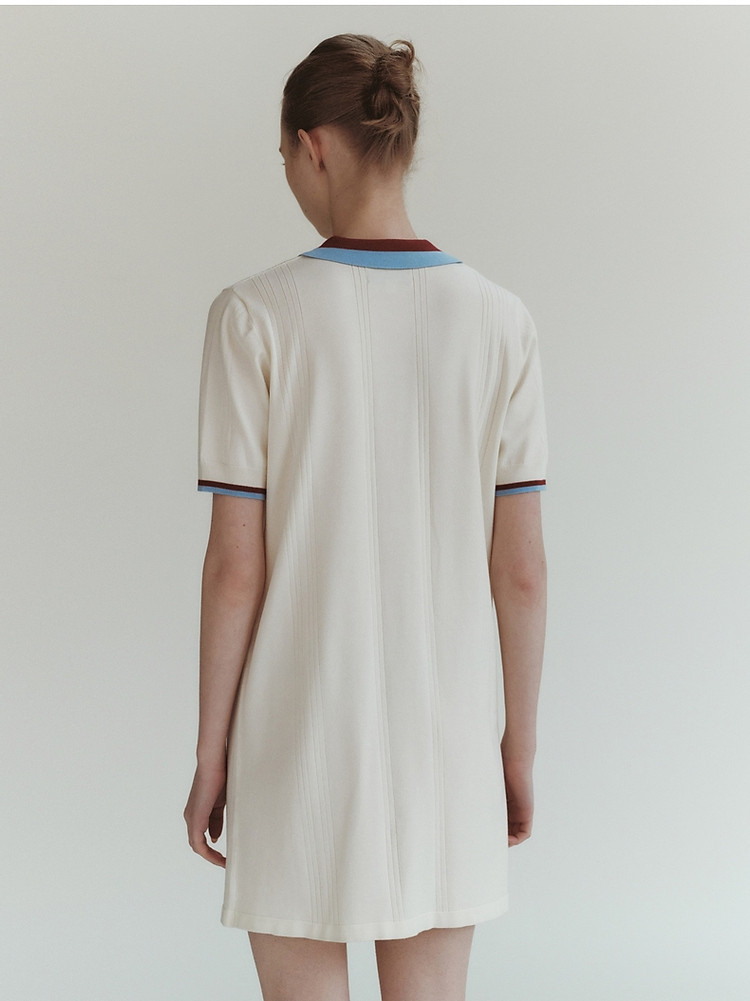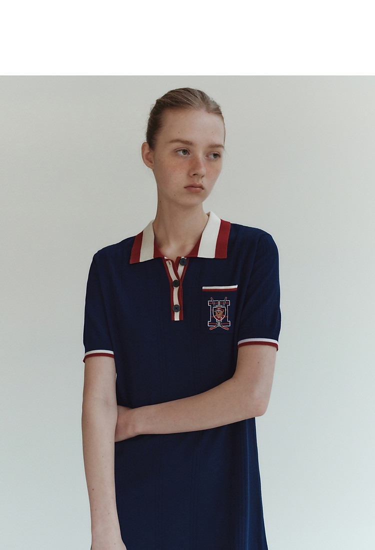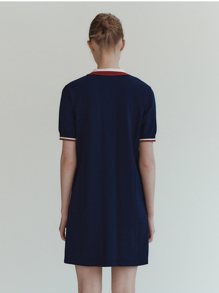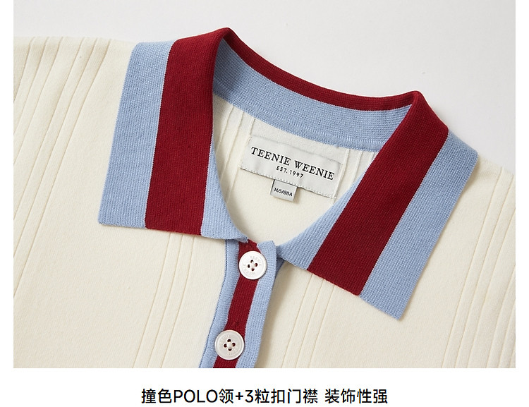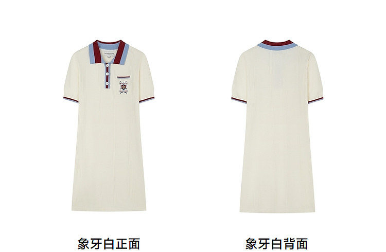 商品名称:小熊气质学院风撞色Polo领短袖毛针织连衣裙 030913