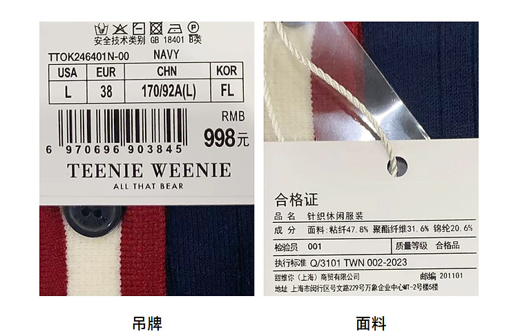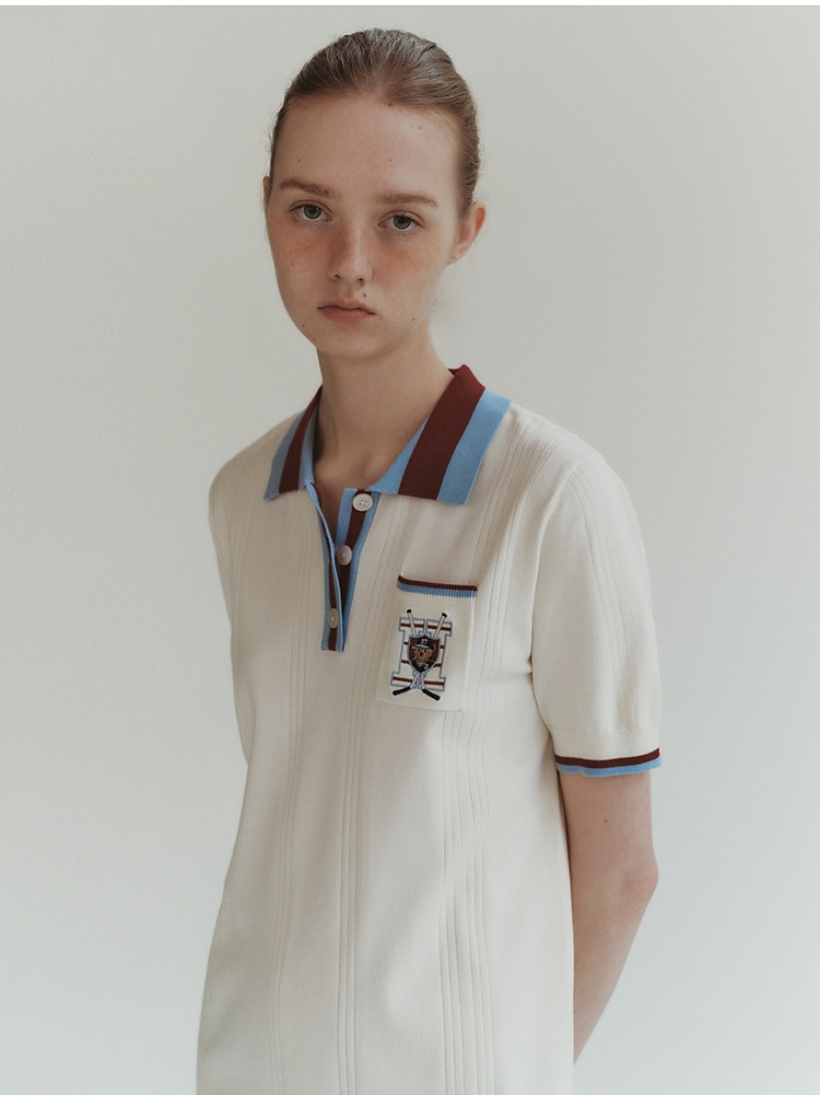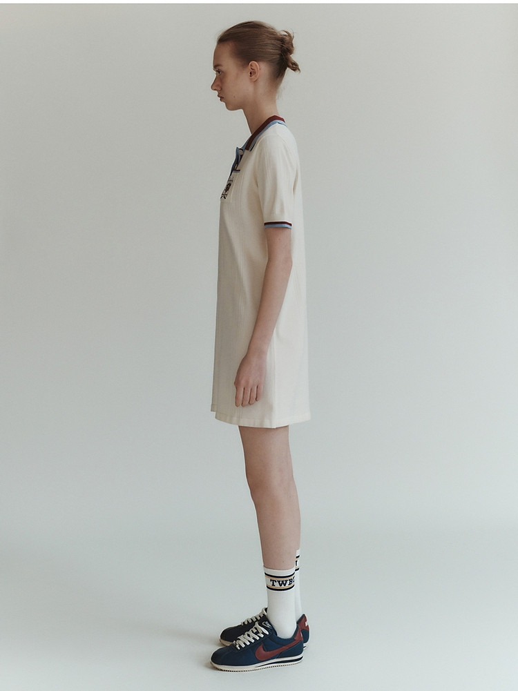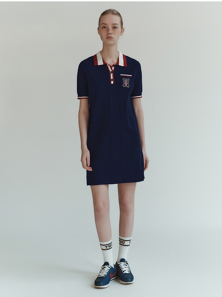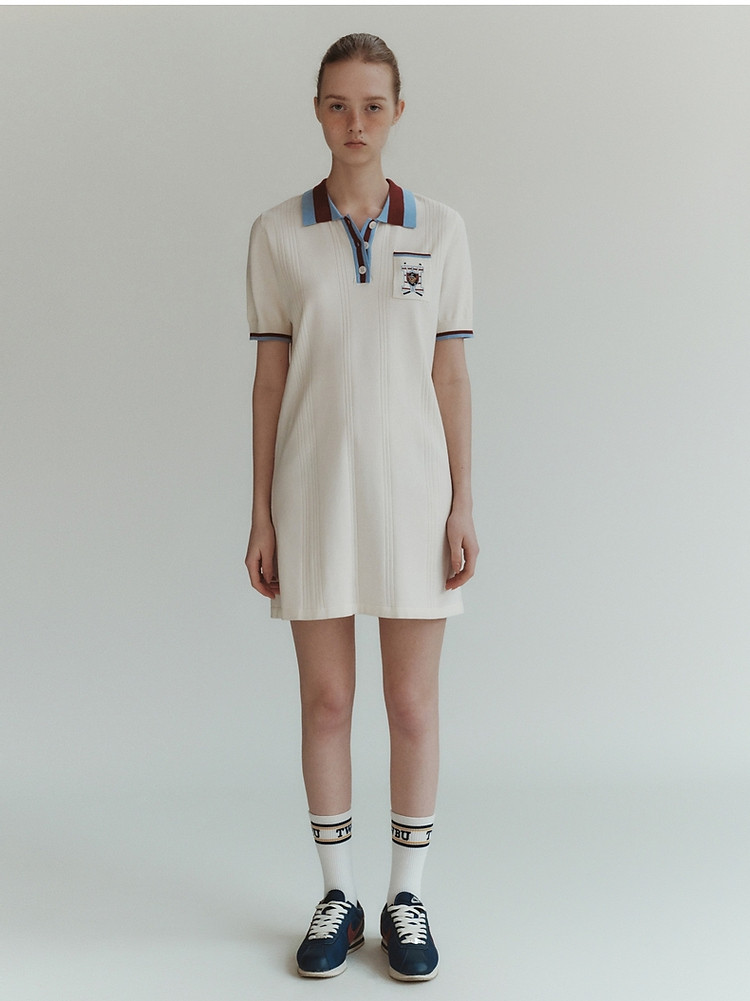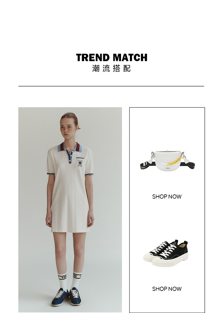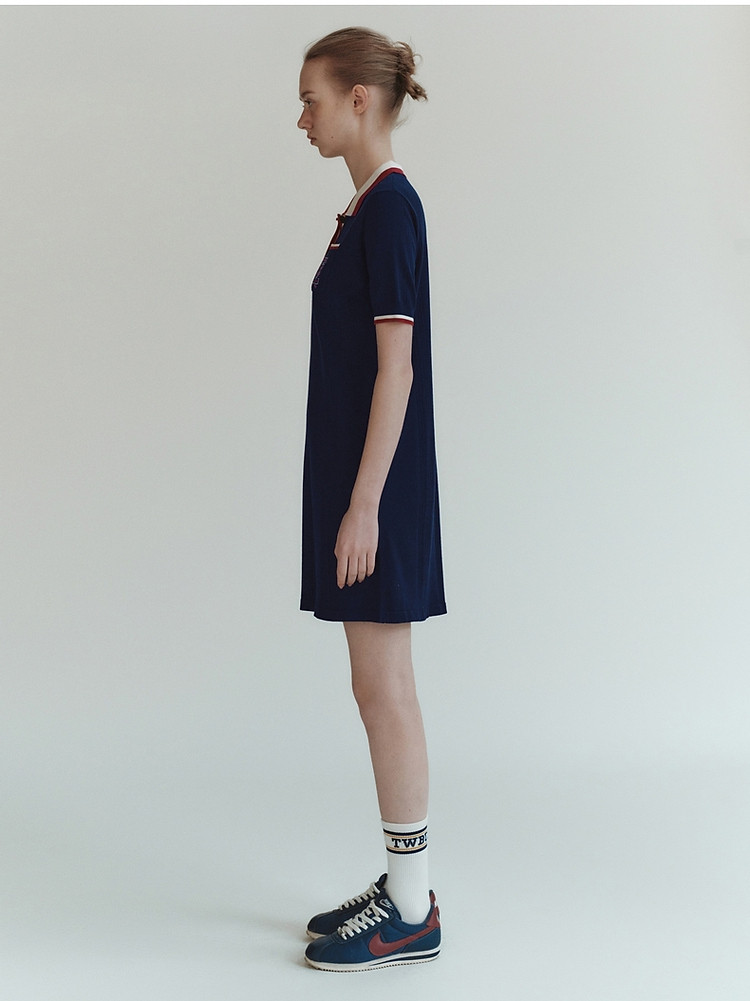 商品名称:小熊气质学院风撞色Polo领短袖毛针织连衣裙 030913