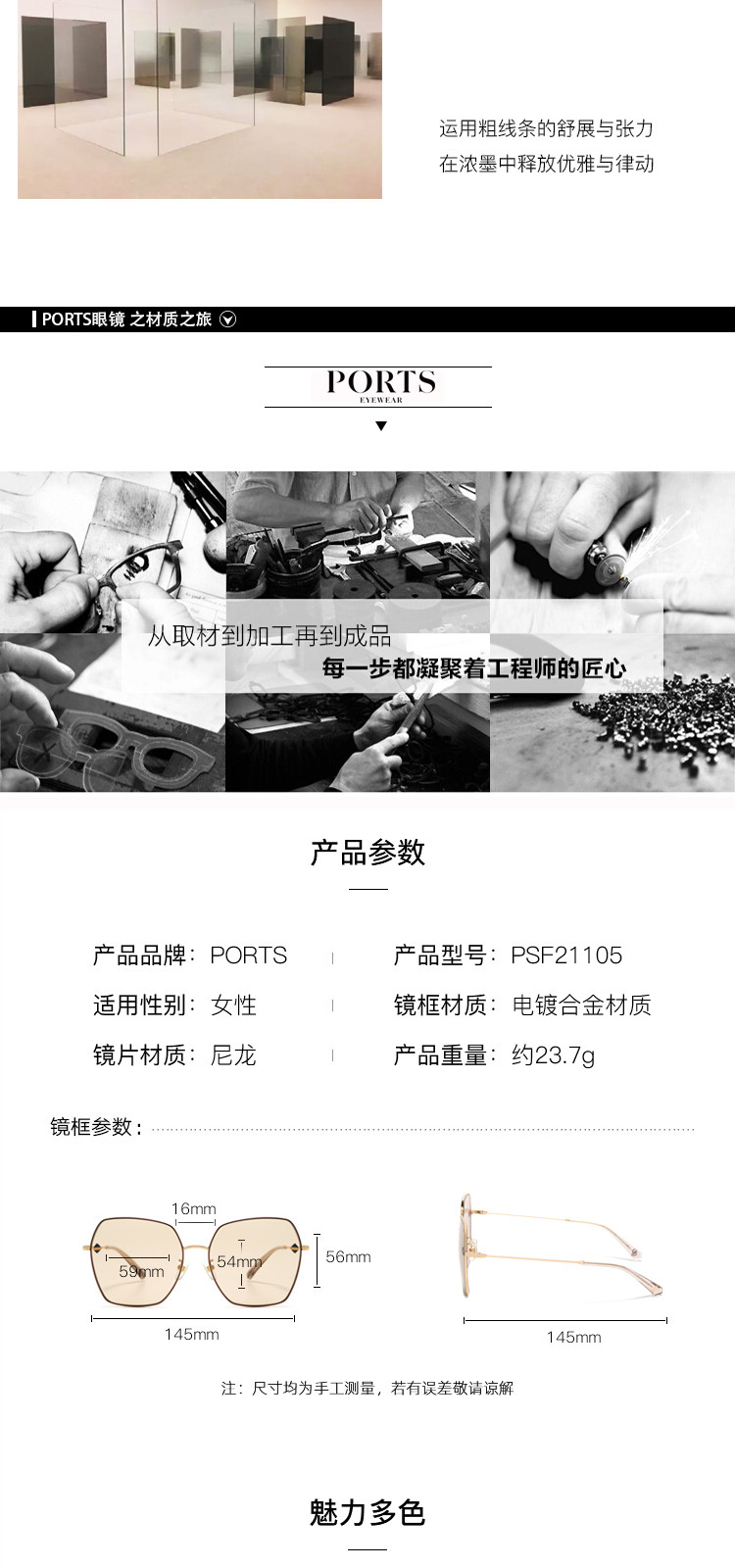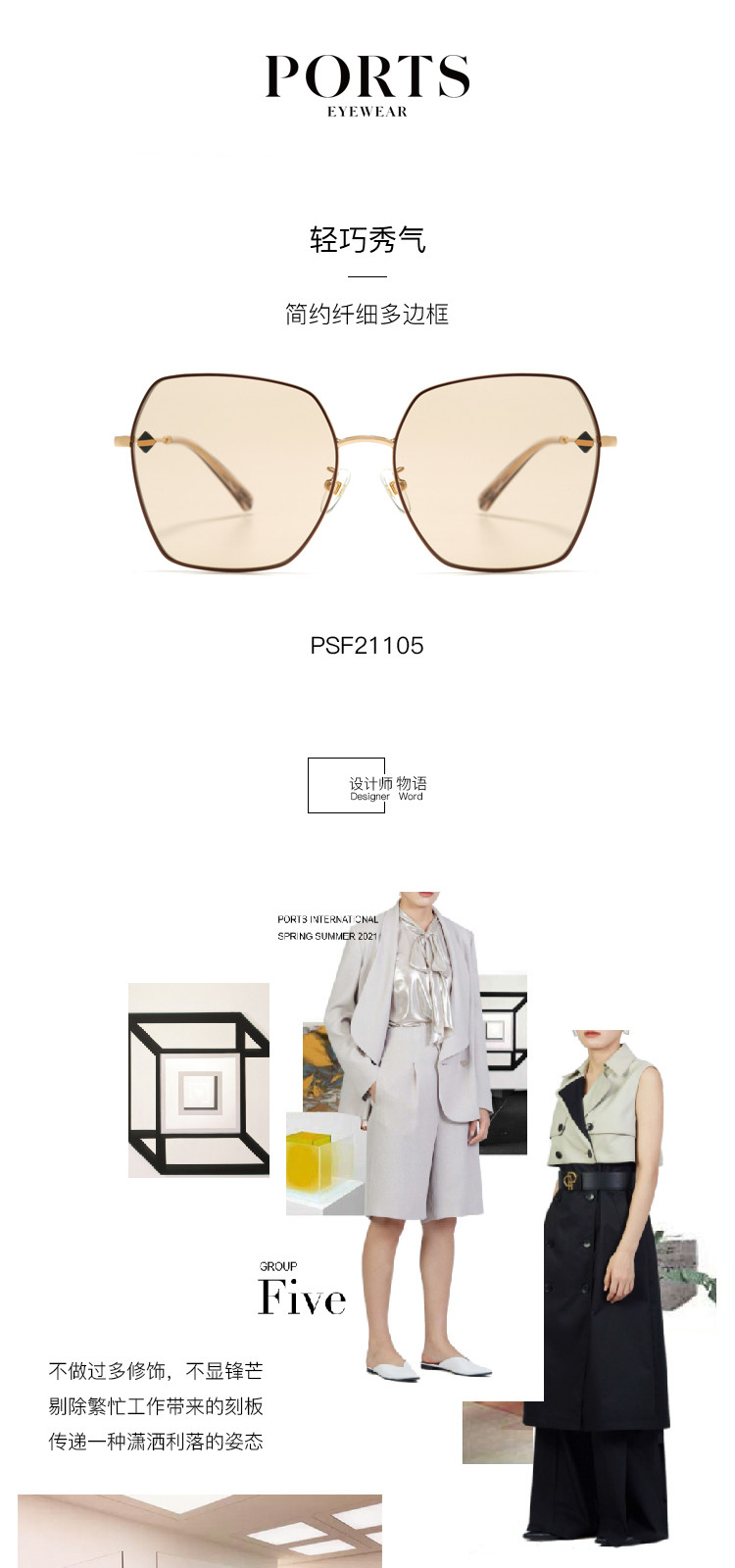 商品名称:PORTS女款轻巧简约时尚金属多边形太阳镜PSF21105 567818