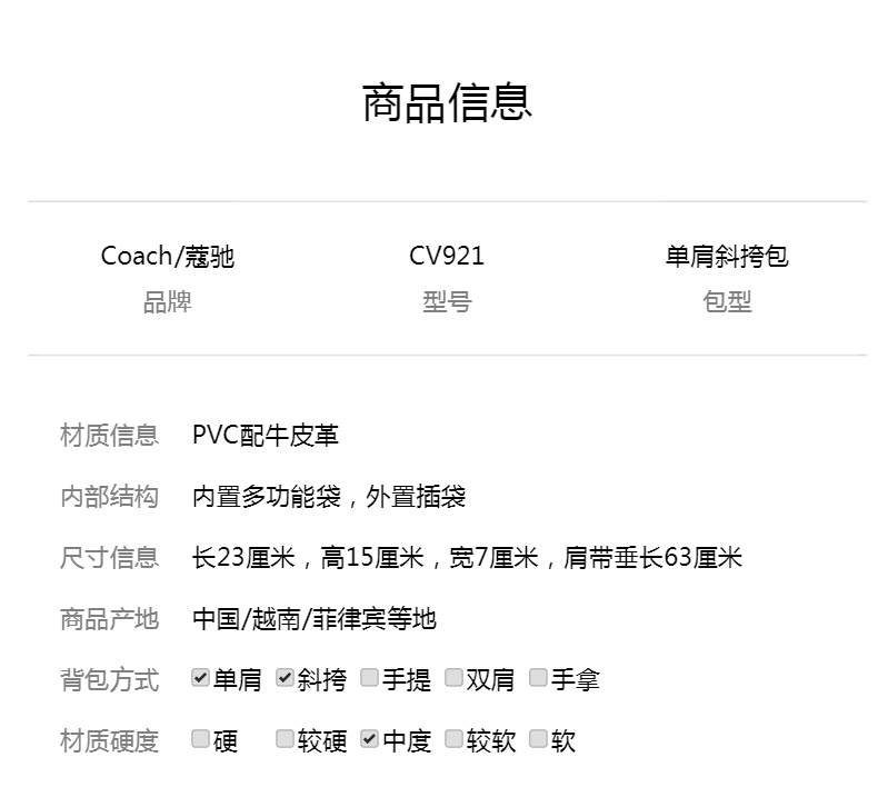 商品名称:COACH 奥莱款男士PVC配皮单肩斜挎相机包 CV921QBMI5