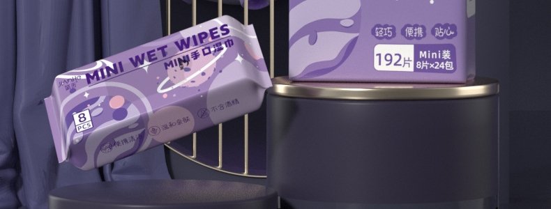 商品名称:简禾 紫色星球迷你手口湿巾 8片*24包