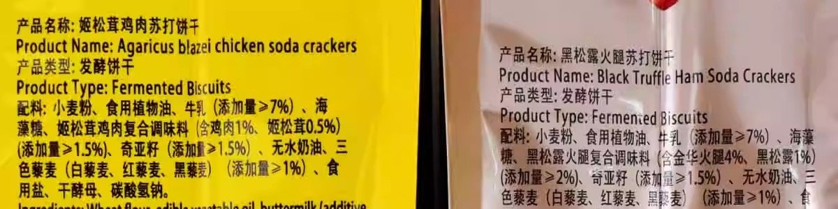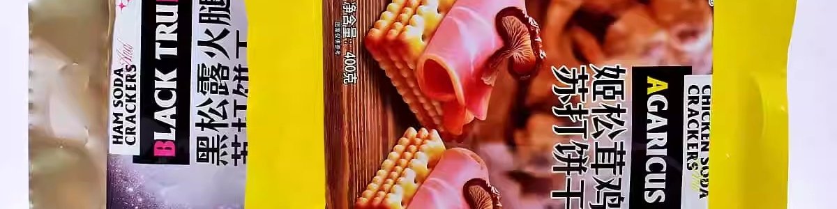 商品名称:NBR 苏打饼干 400g/袋*2袋(黑松露火腿1+姬松茸鸡肉1)