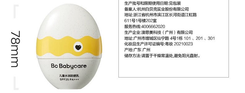 商品名称:Babycare 儿童水润防晒乳 50ml