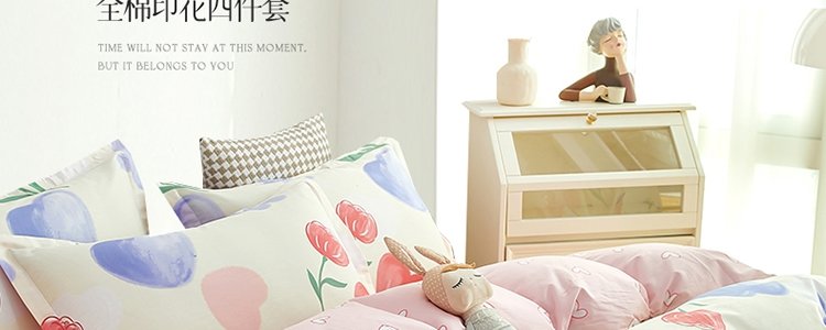 商品名称:品格家纺 全棉小清新印花床上四件套 萱梦 (适用于1.5-1.8米床)