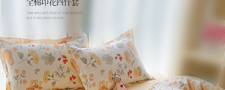 商品名称:品格家纺 全棉小清新印花床上四件套 妙趣花田 (适用于1.5-1.8米床)