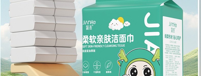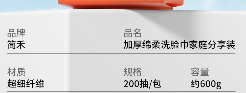 商品名称:简禾 一次性加厚加大家庭装悬挂抽取式绵柔巾 100抽