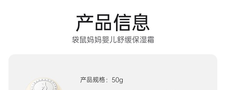 商品名称:袋鼠妈妈 宝宝补水舒缓保湿霜 50g