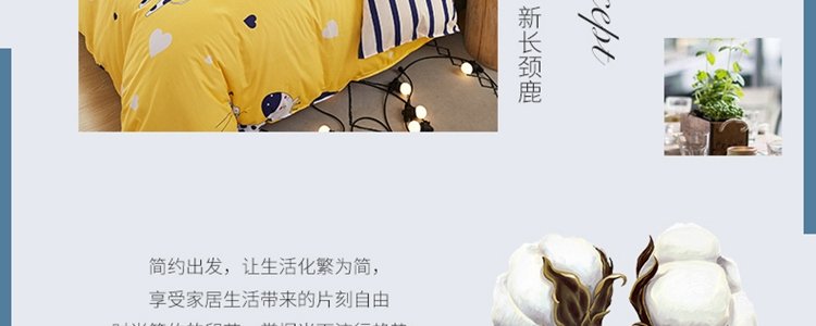 商品名称:品格家纺 全棉小清新印花床上四件套 长颈鹿 (适用于1.5-1.8米床)